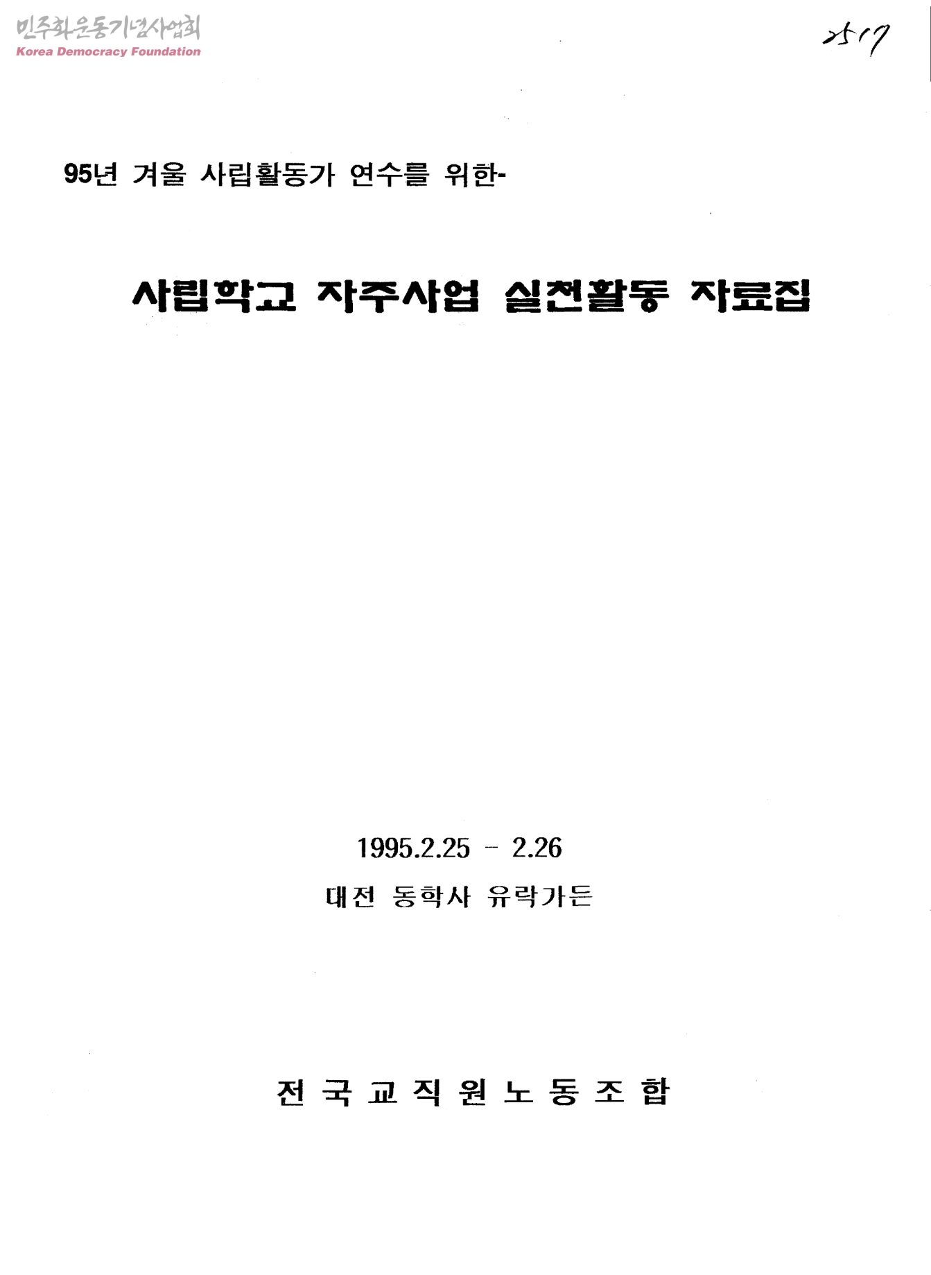 95년 겨울 사립활동가 연수를 위한 사립학교 자주사업 실천활동 자료집
