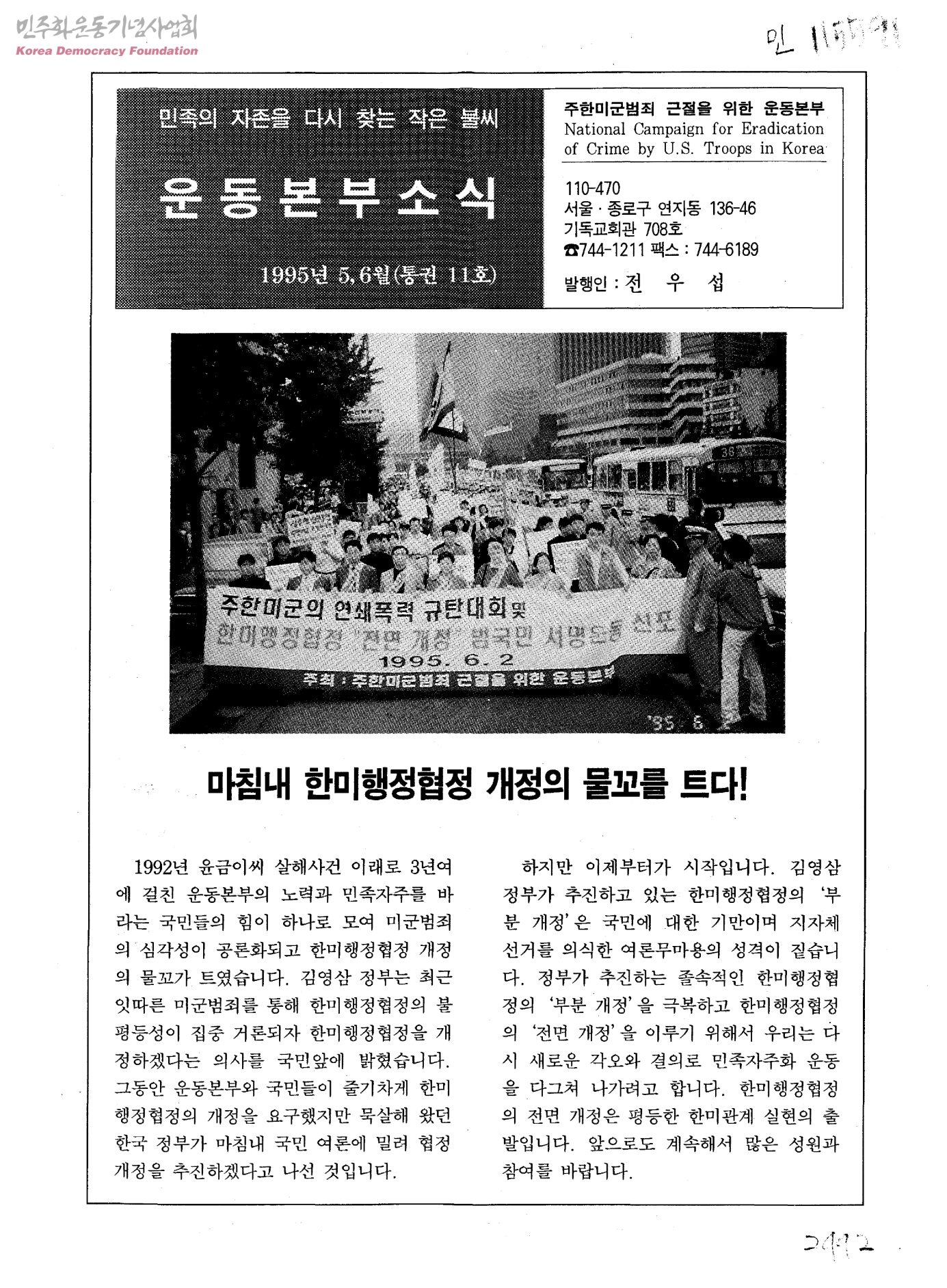 민족의 자존을 다시 찾는 작은 불씨 운동본부소식 통권 11호
