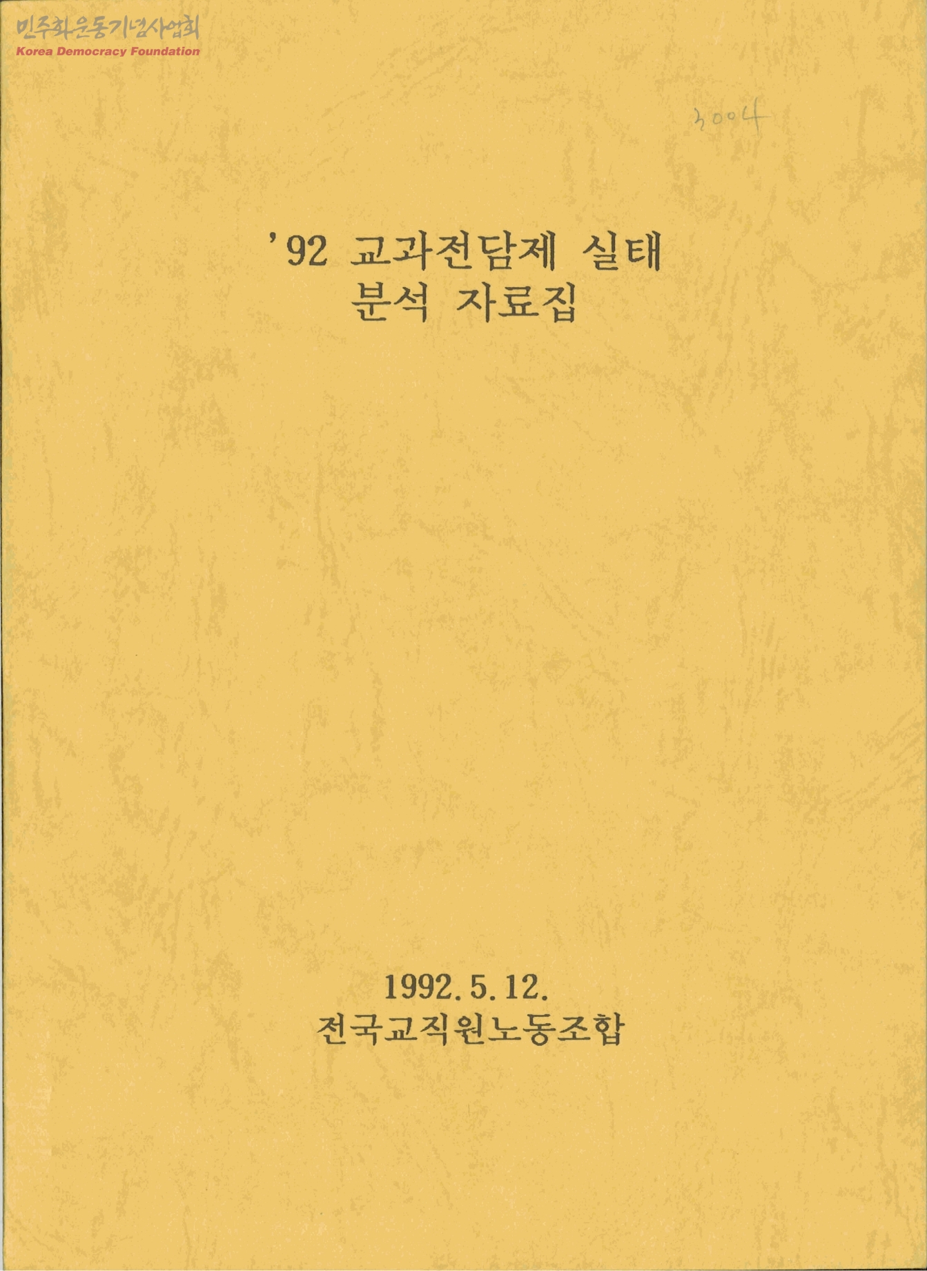 92 교과전담제 실태분석 자료집