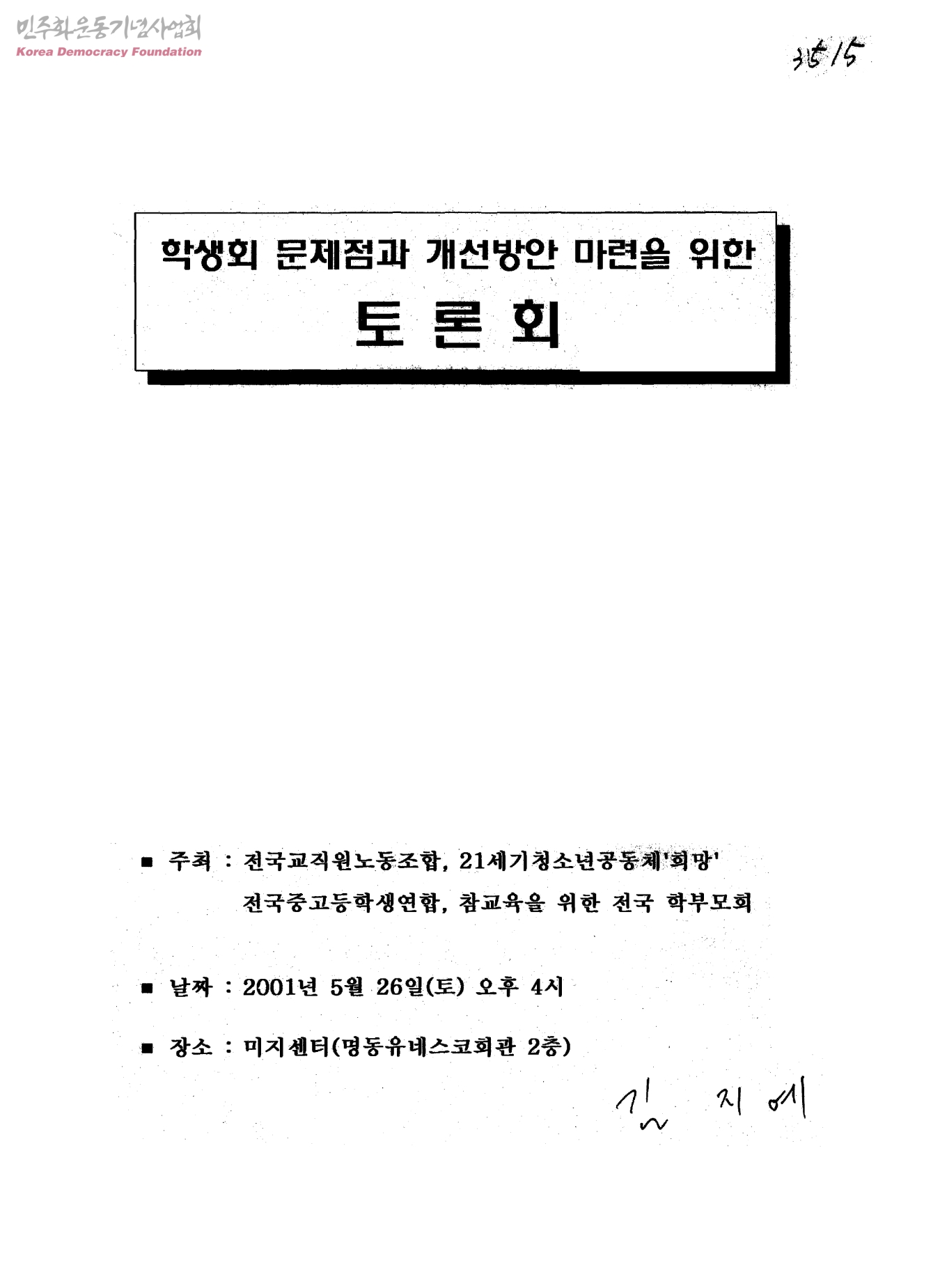 학생회 문제점과 개선방안 마련을 위한 토론회