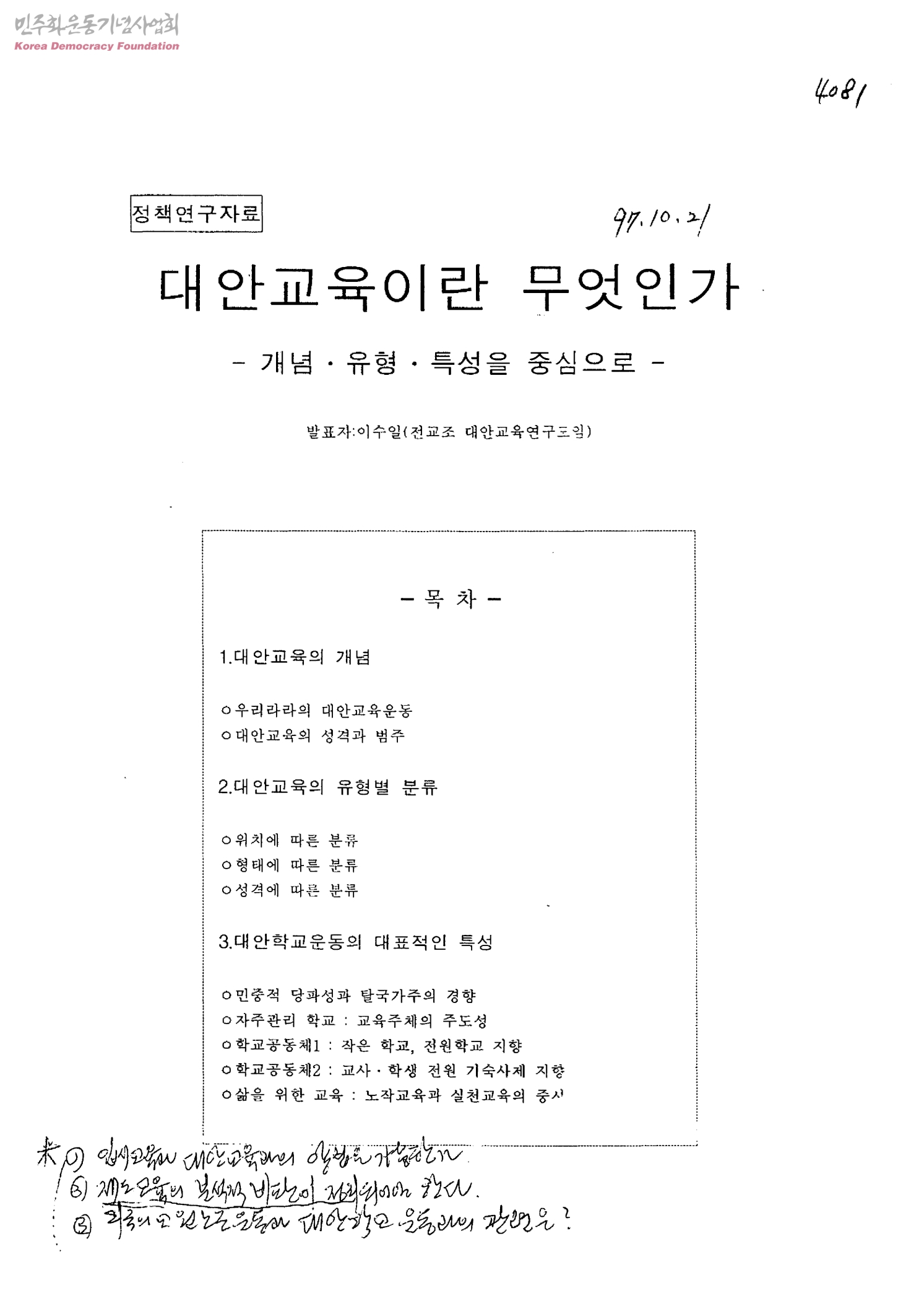 정책연구자료-대안교육이란 무엇인가(개념·유형·특성을 중심으로)