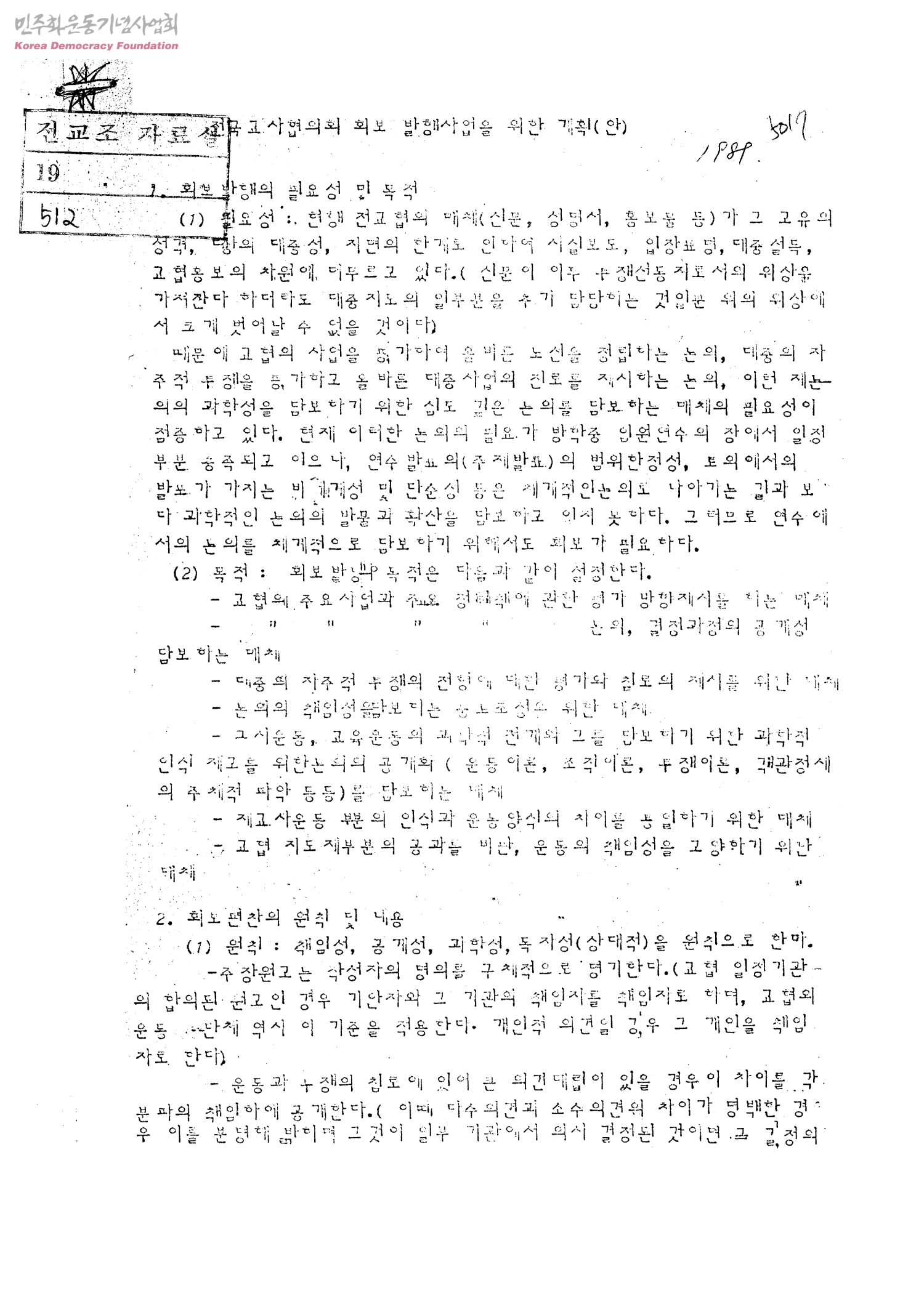 전국교사협의회 회보 발행사업을 위한 계획(안)