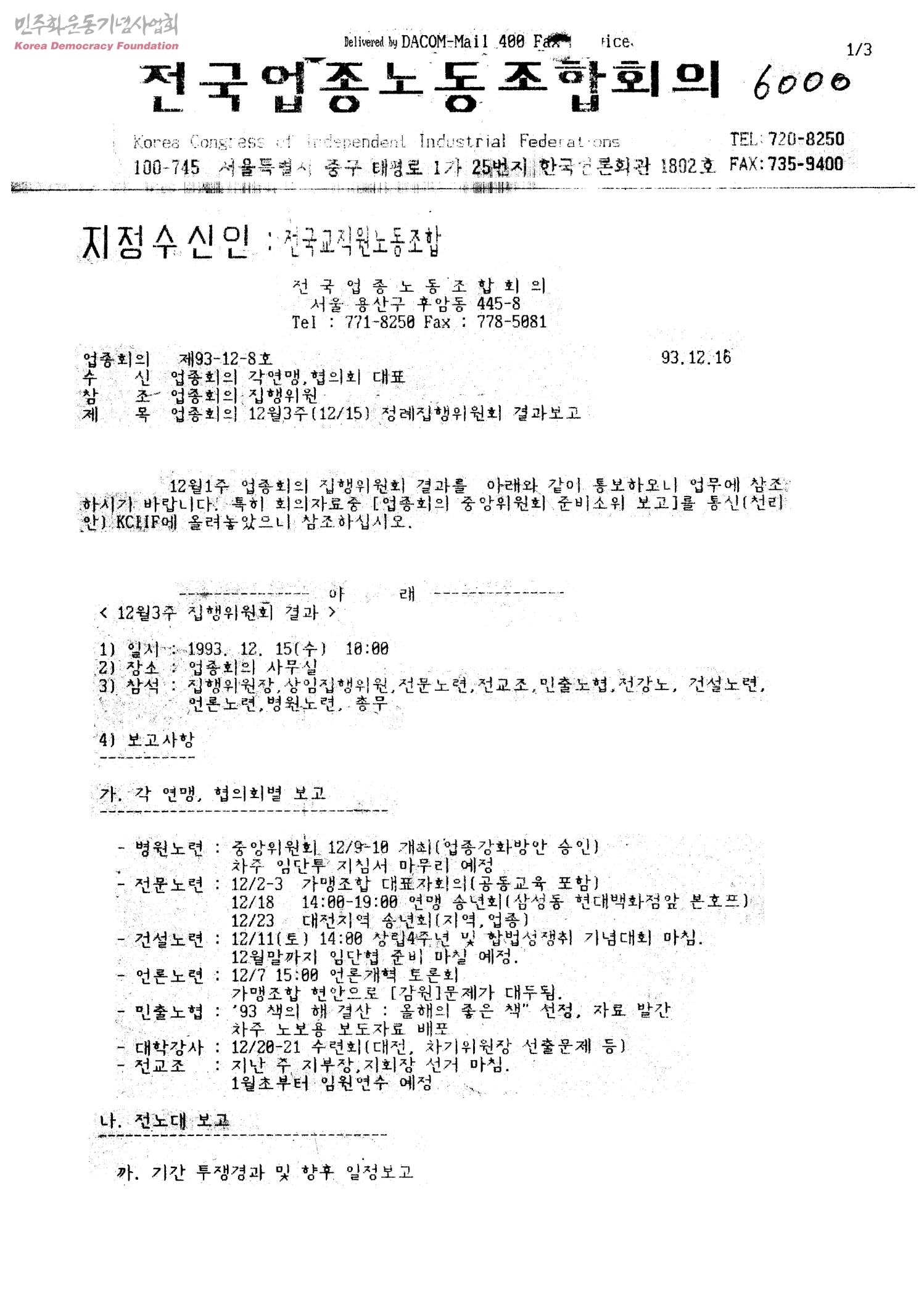업종회의 12월3주12/15 정례집행위원회 결과보고