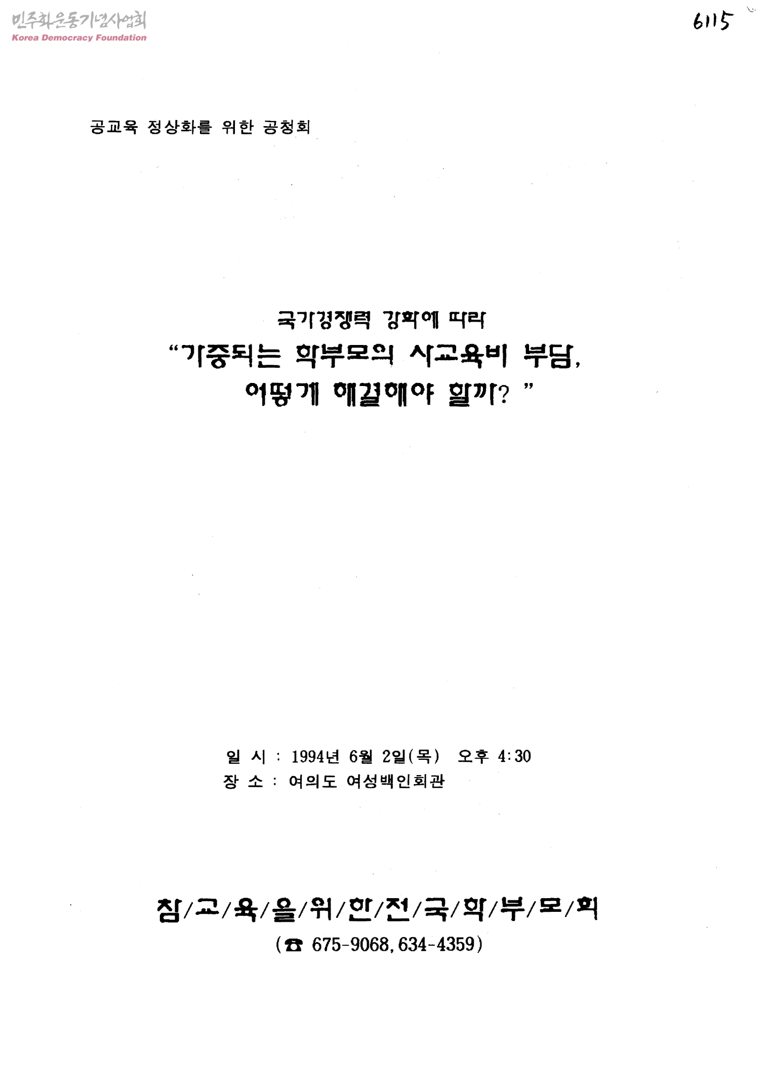 공교육 정상화를 위한 공청회국가경쟁력 강화에 따라 가중되는 학부모의 사교육비 부담, 어떻게 해결해야 할까