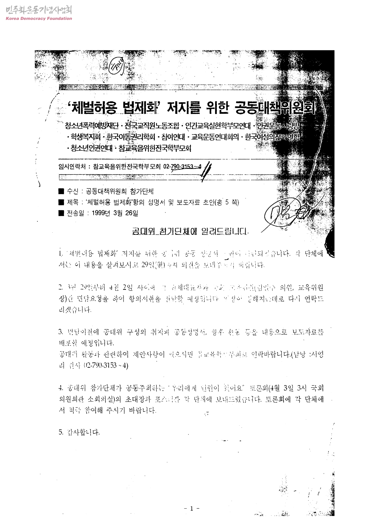 - 체벌허용법제화저지를위한공동대책위원회