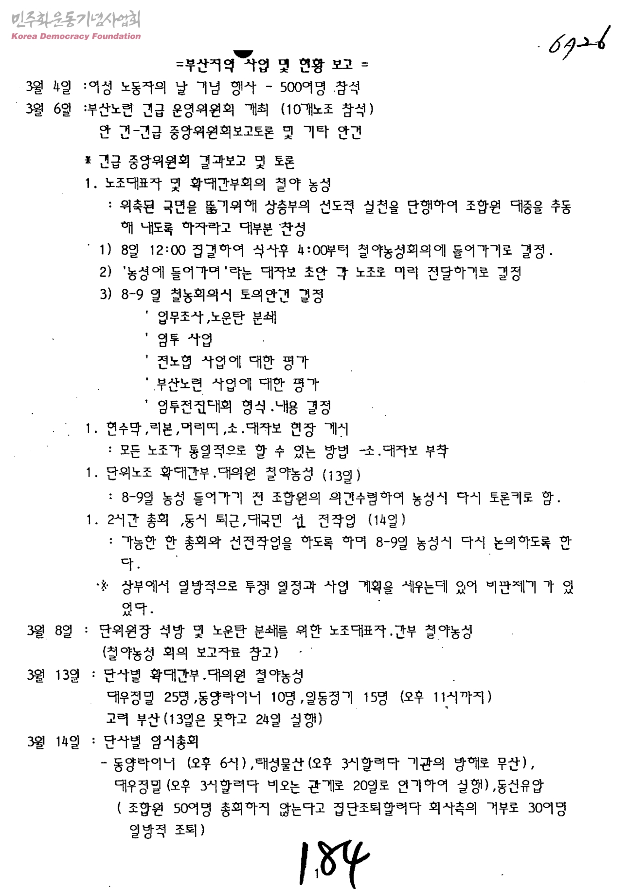부산지역 사업 및 현황 보고