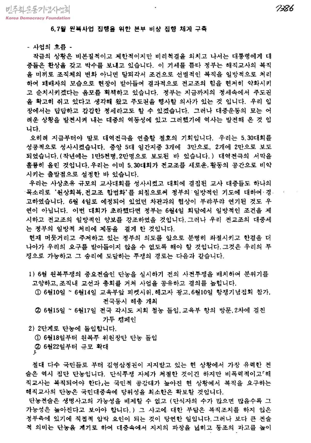6,7월 원복사업 집행을 위한 본부 비상 집행 체계 구축