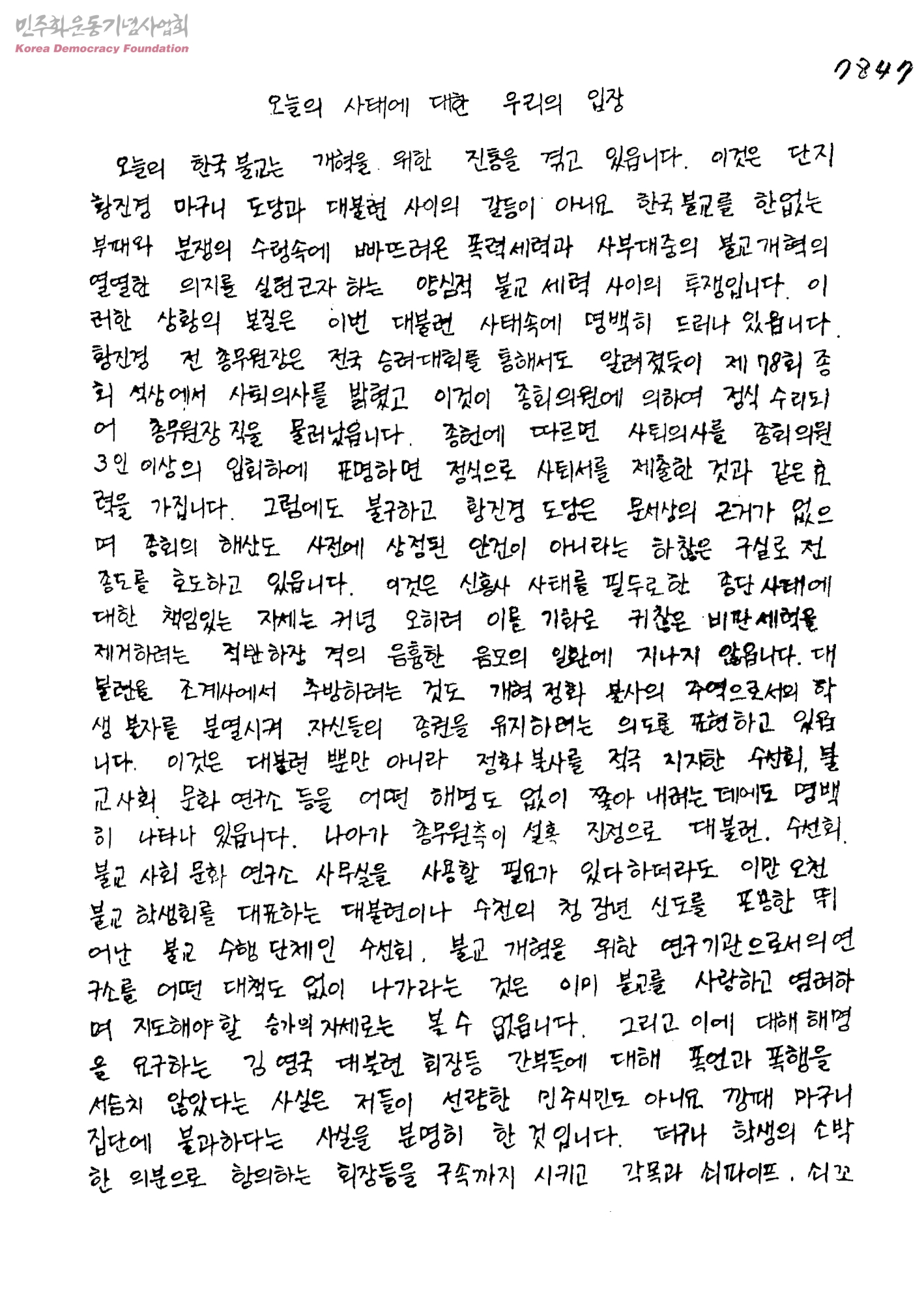 - 생산자 및 기증자가 ‘박용수’인 사진의 사용은 구매신청을 클릭하여 직접 사진 구매 신청을 하실 수 있습니다. 생산자 및 기증자가 ‘경향신문사’인 사진의 사용은 경향신문사 담당자(02-3701-1635)를 통해 구매하실 수 있습니다. 그 외의 생산자 및 기증자는 민주화운동기념사업회 사료관 담당자( hyunchaek@kdemo.or.kr / 02-6440-8961 )에 문의바랍니다.