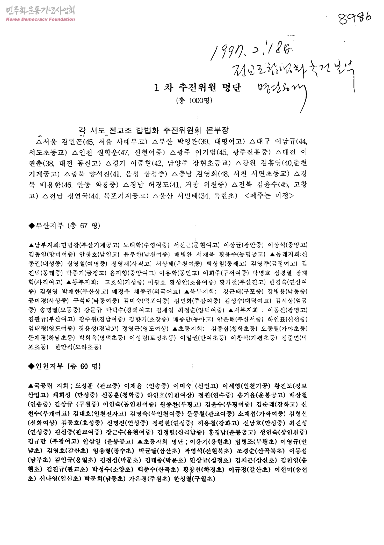 전교조합법화추진본부1차 추진위원 명단