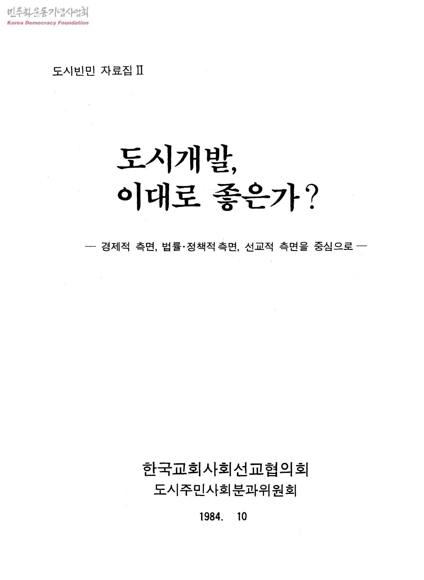 도시빈민 자료집2-도시개발, 이대로 좋은가?(경제적 측면, 법률.정책적 측면, 선교적 측면을 중심으로)