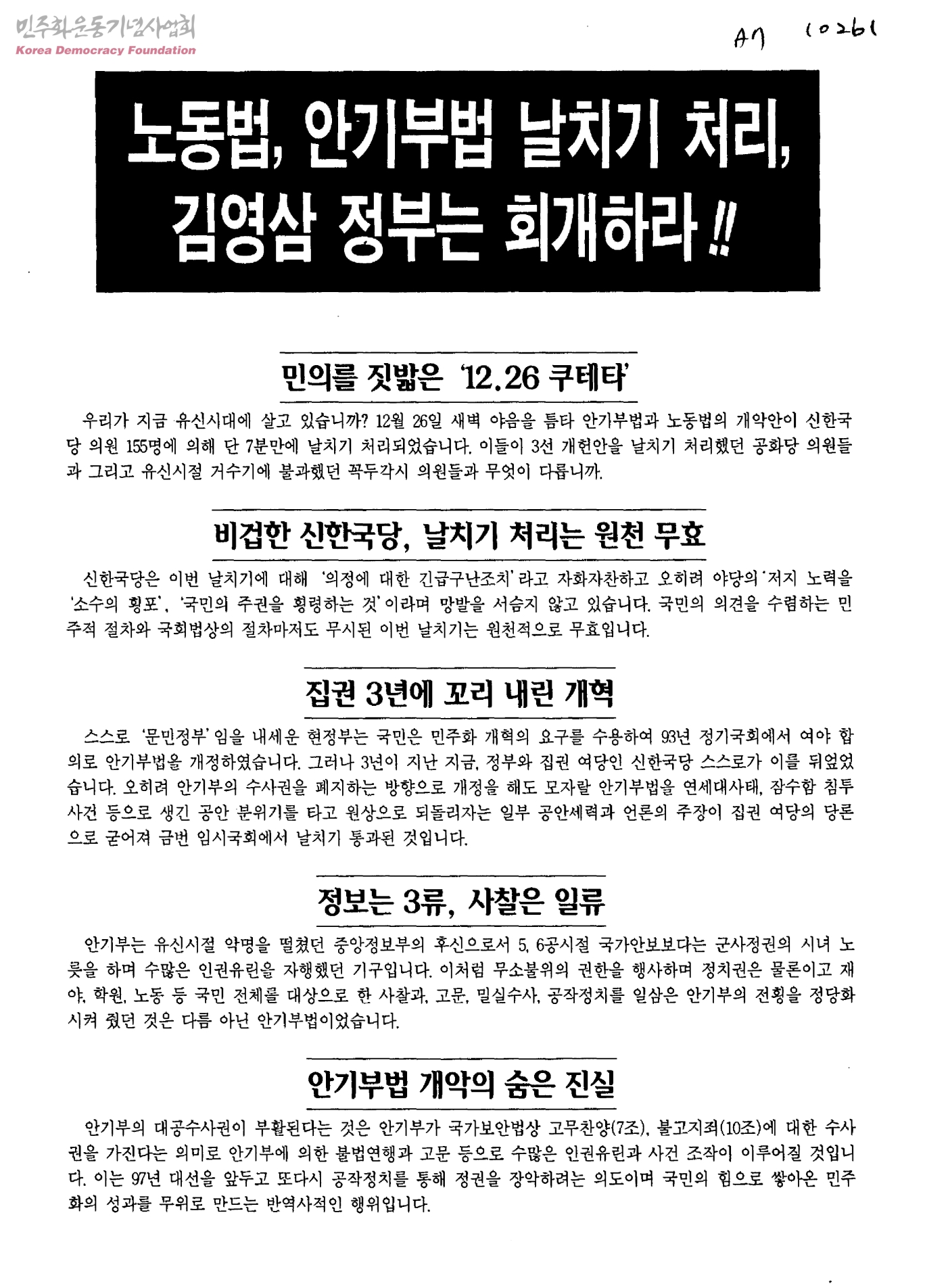노동법, 안기부법 날치기 처리, 김영삼 정부는 회개하라