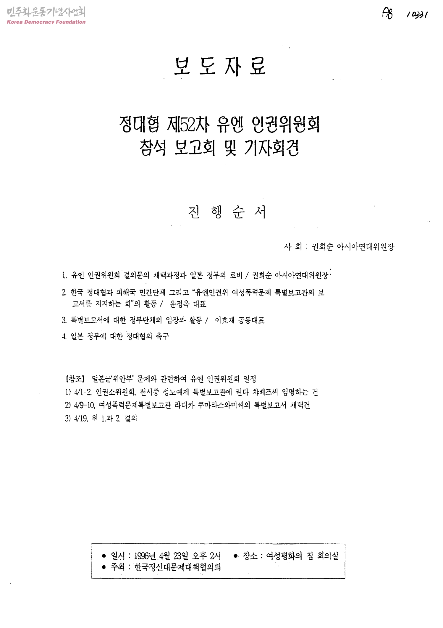 보도자료-정대협 제52차 유엔 인권위원회 참석 보고회 및 기자회견