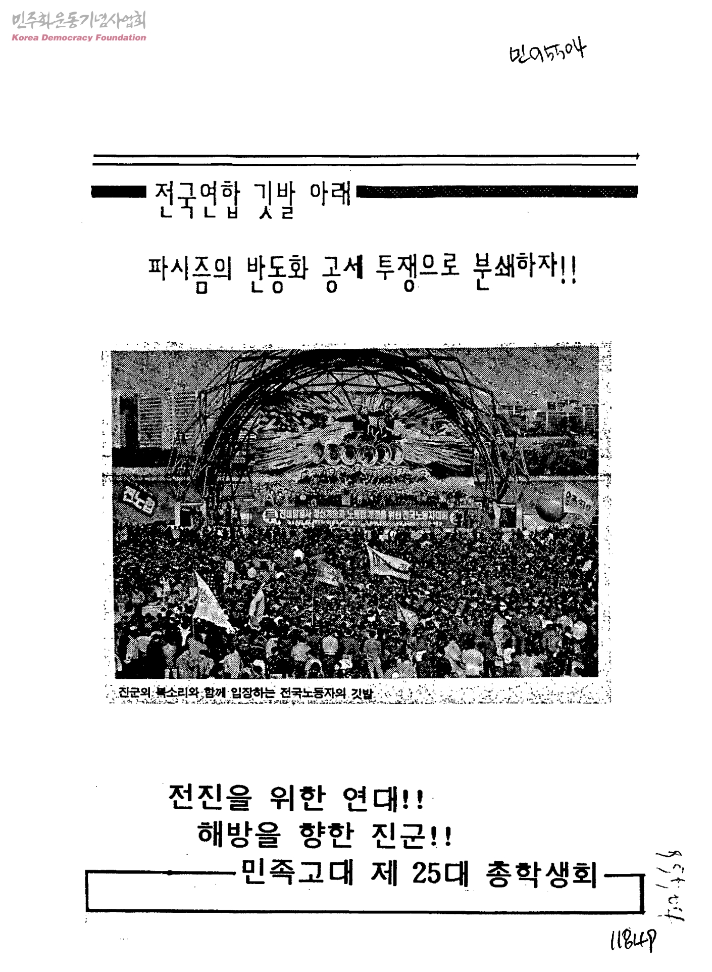 전국연합 깃발아래 파시즘의 반동화 공세 투쟁으로 분쇄하자