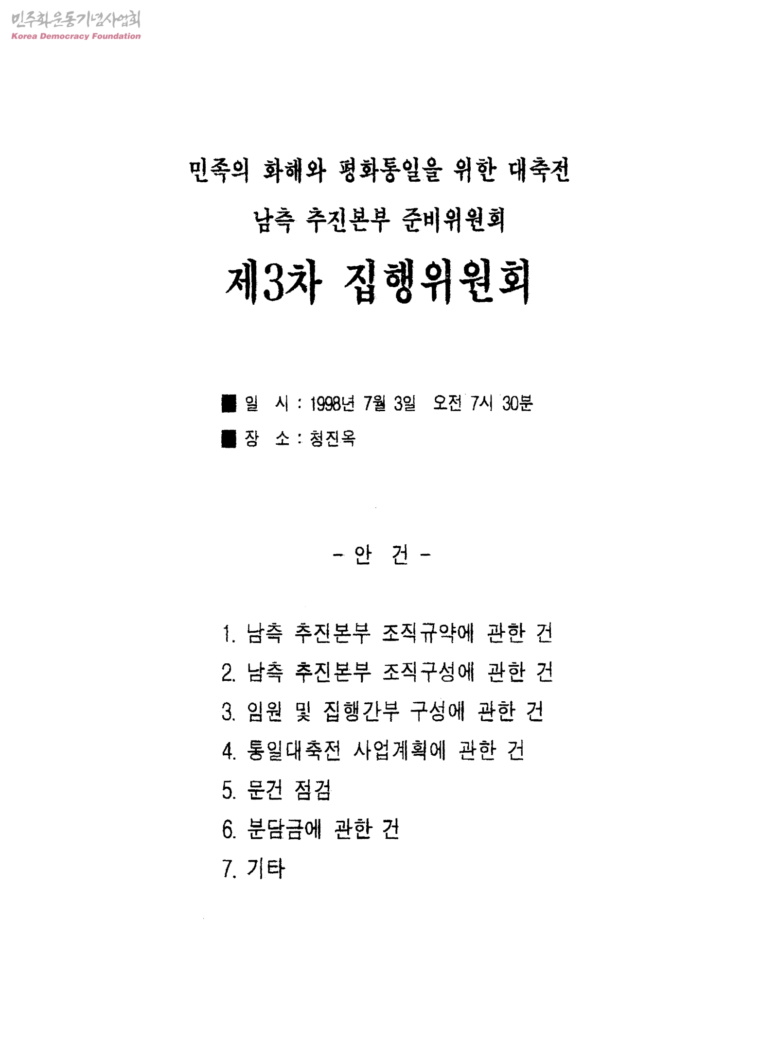 [민족의 화해와 평화통일을 위한 대축전 남측 추진본부 준비위원회 제3차 집행위원회와 민족의 화해와 평화통일을 위한 대축전 남측추진본부 결성식 관련]