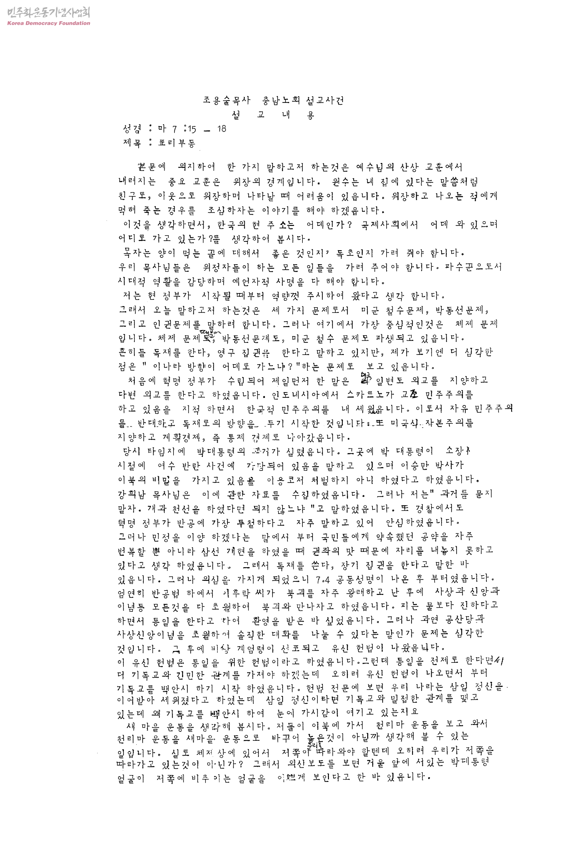 조용술 목사 충남노회 설교사건 설교내용