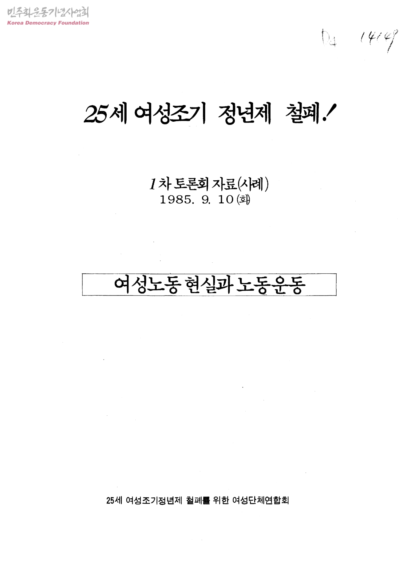 25세 여성조기 정년제 철폐-1차 토론회 자료(여성노동현실과 노동운동)