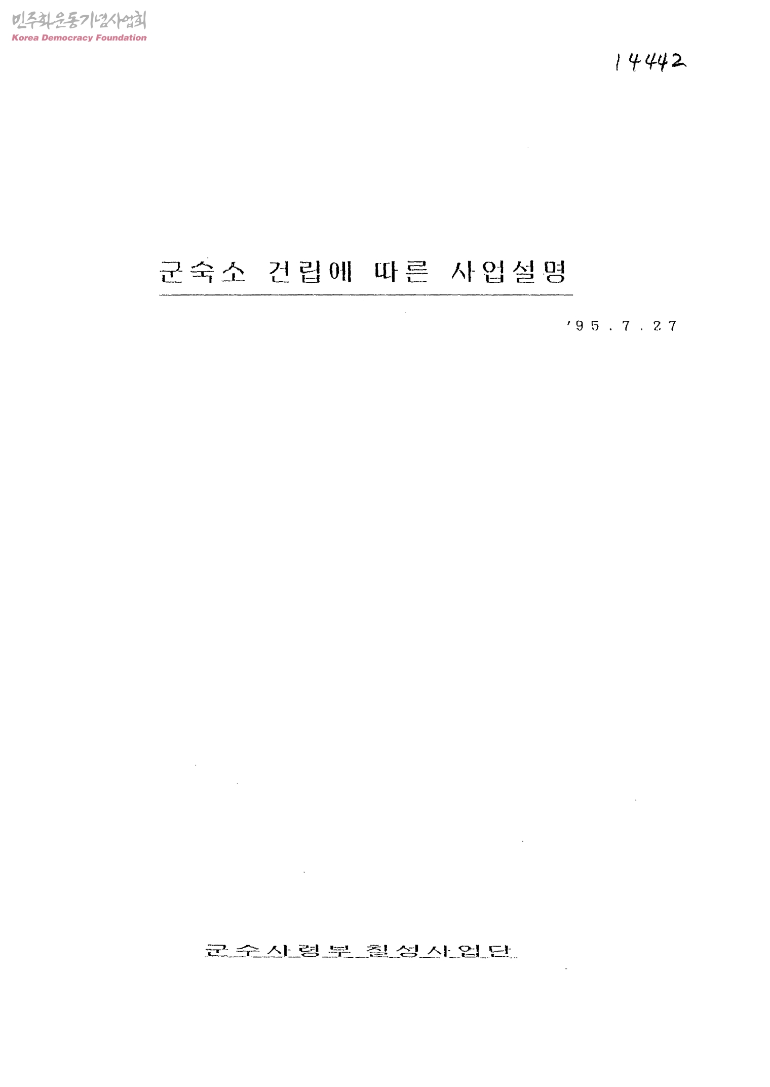 군숙소 건립에 따른 사업설명