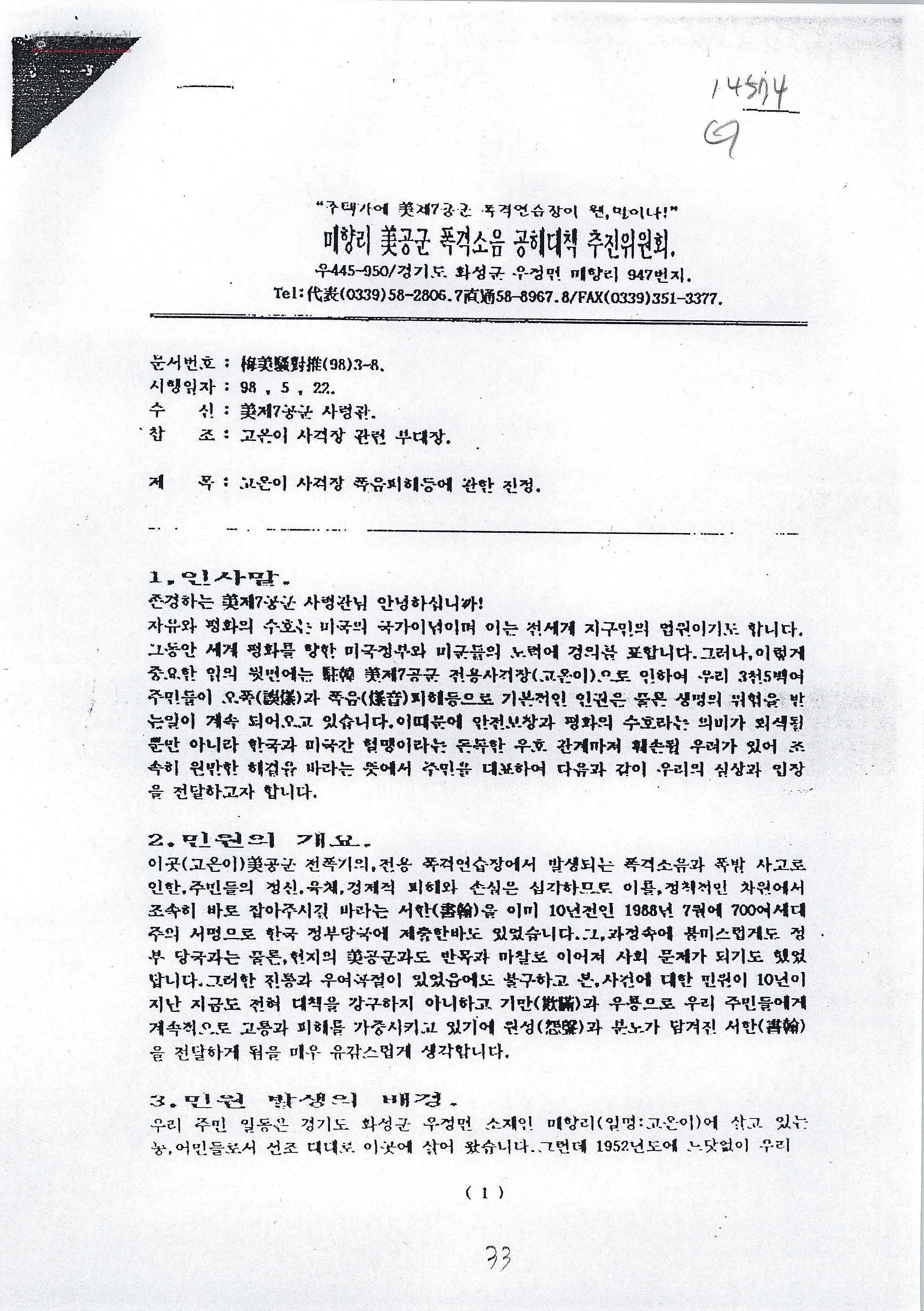 - 매향리 美공군 폭격소음 공해대책 추진위원회