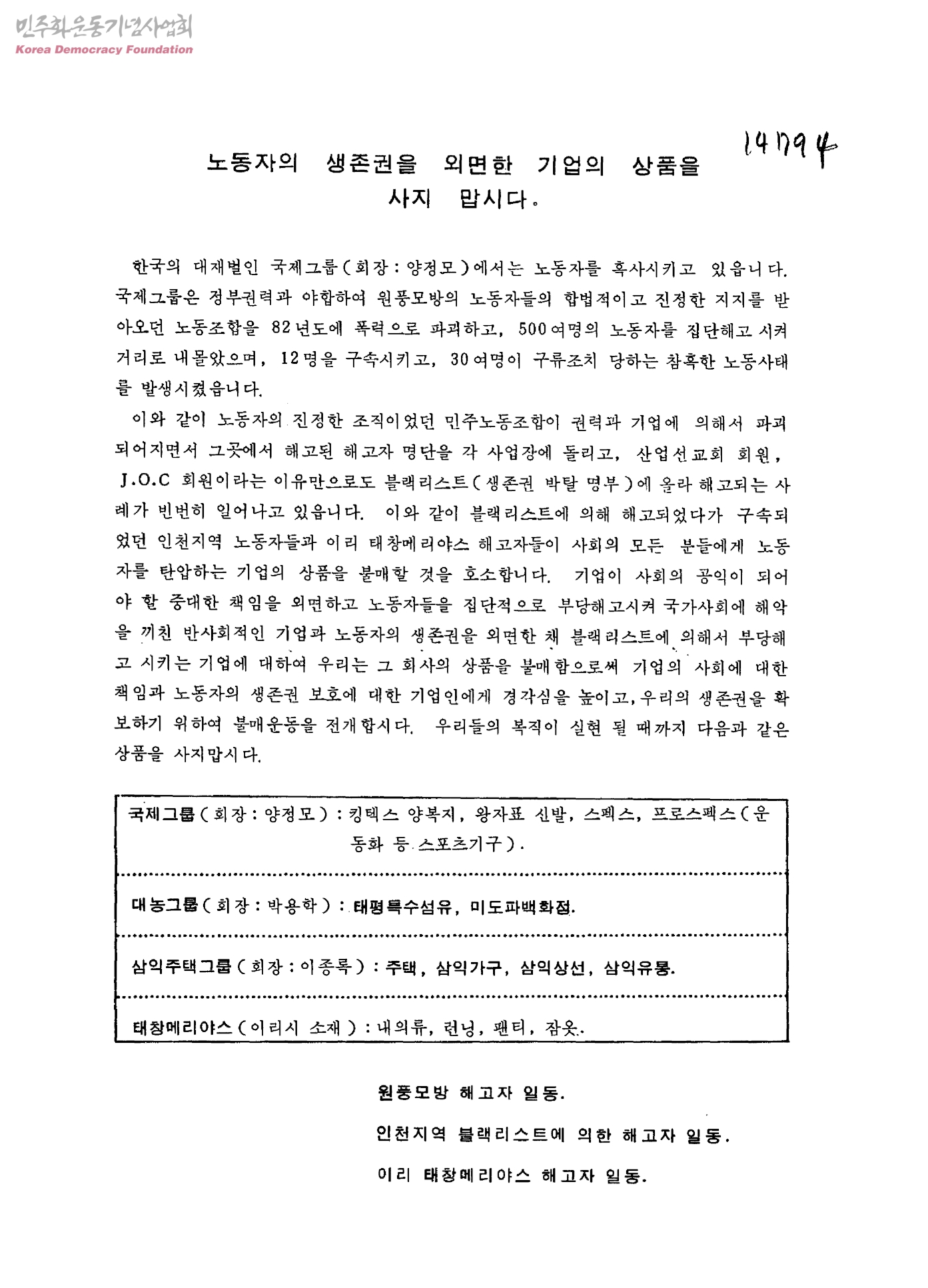 노동자의 생존권을 외면한 기업의 상품을 사지 맙시다