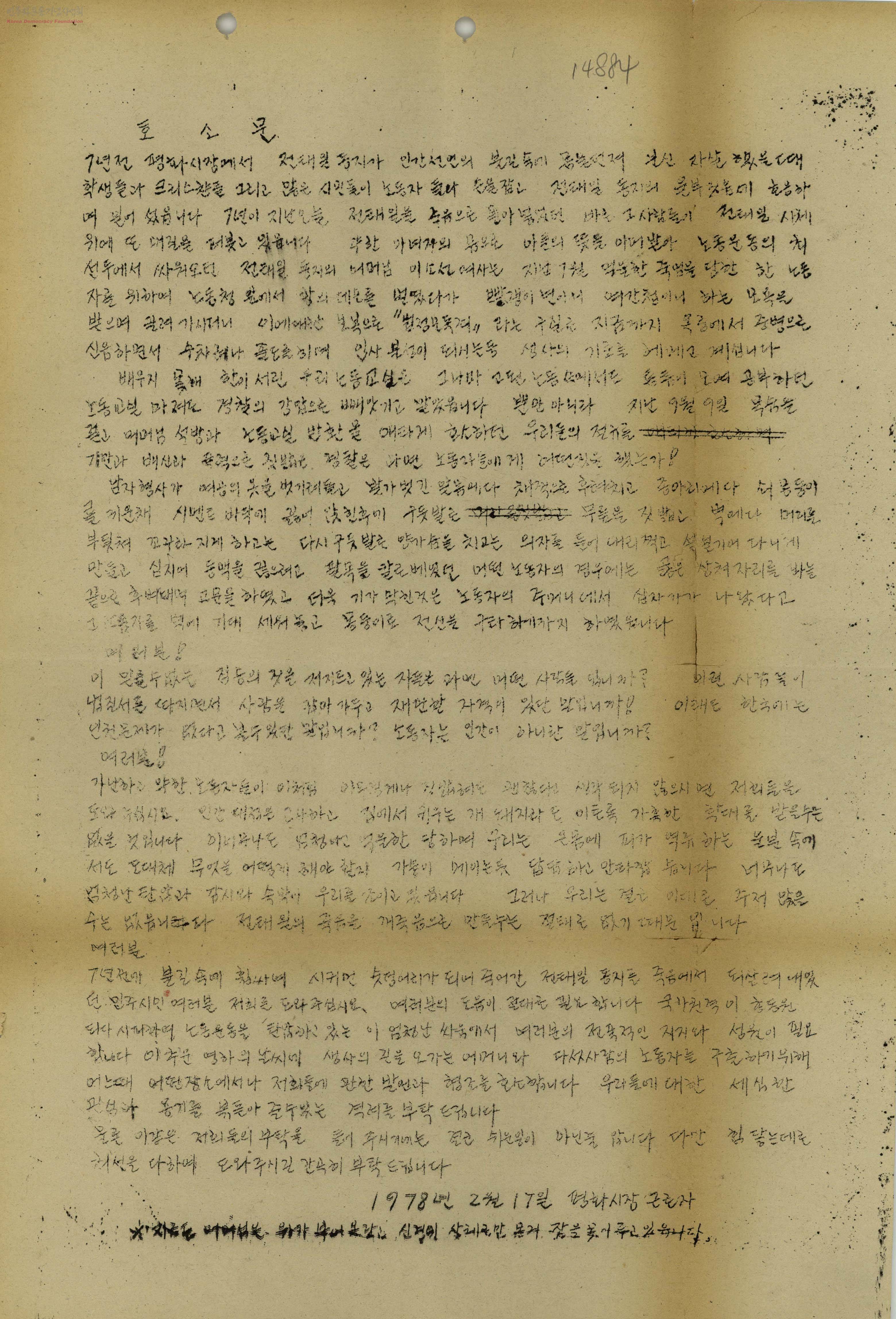 호소문[노동운동 지지와 성원]