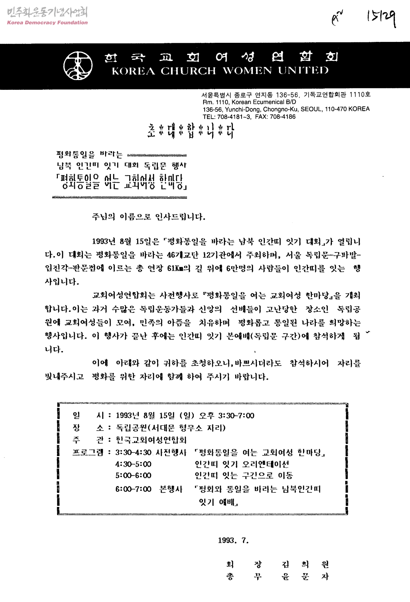 평화통일을 바라는 남북 인간띠 잇기 대회 독립문 행사 평화통일을 여는 교회여성 한마당