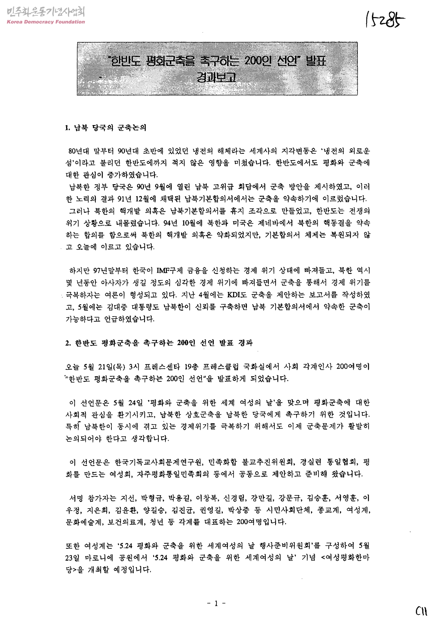 한반도 평화군축을 촉구하는 200인 선언 발표경과보고