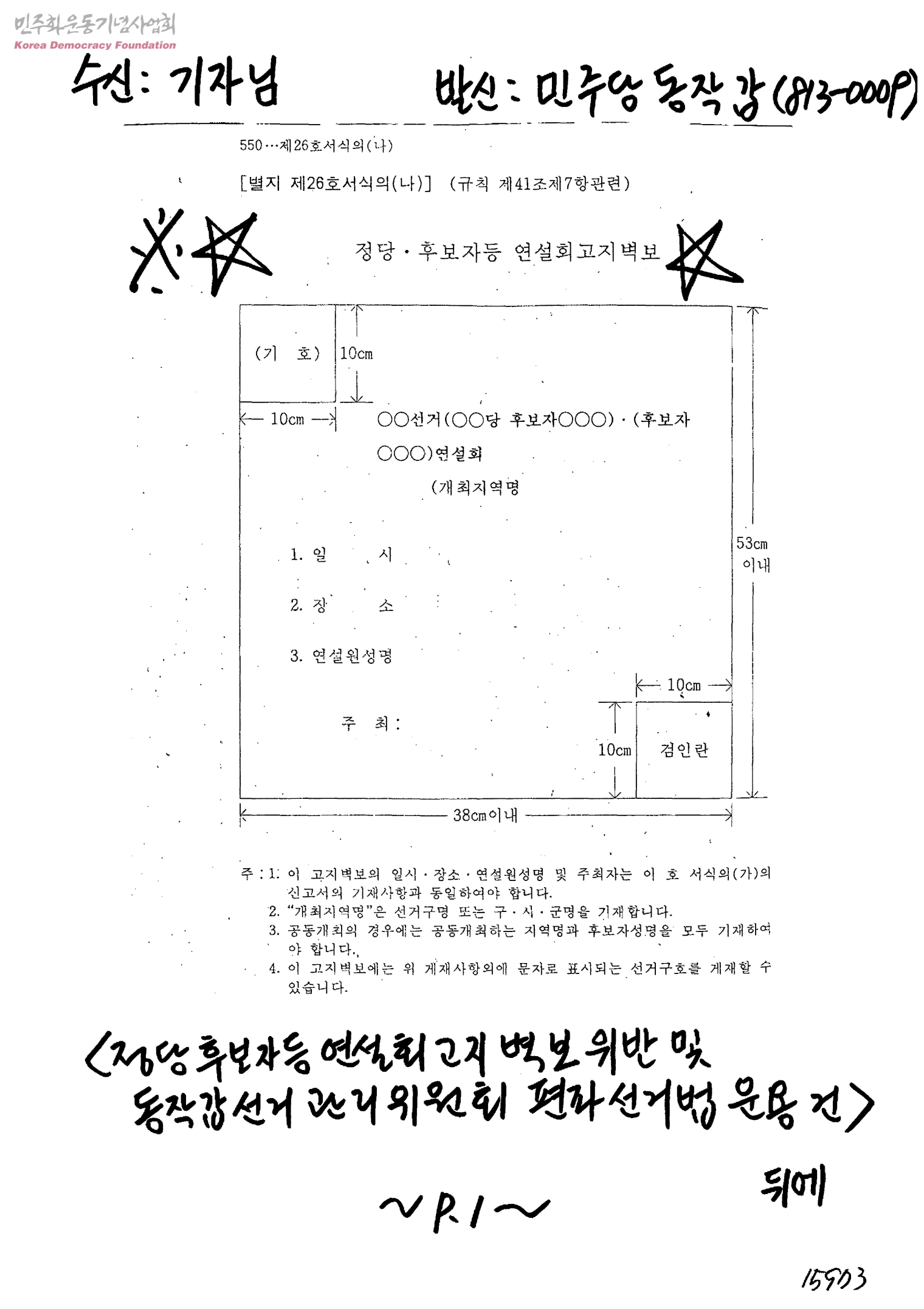 정당후보자 등 연설회고지 벽보 위반 및 동작갑선거관리위원회 편파선거법 운용 건[수신:기자, 발신:민주당 동작갑]