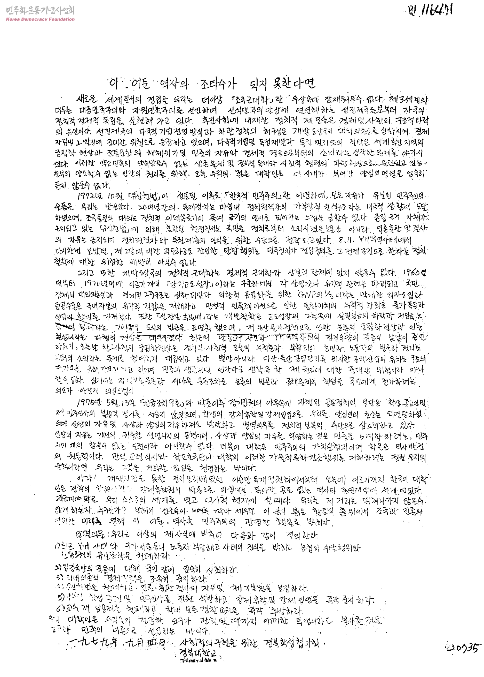 - 생산자 및 기증자가 ‘박용수’인 사진의 사용은 구매신청을 클릭하여 직접 사진 구매 신청을 하실 수 있습니다. 생산자 및 기증자가 ‘경향신문사’인 사진의 사용은 경향신문사 담당자(02-3701-1635)를 통해 구매하실 수 있습니다. 그 외의 생산자 및 기증자는 민주화운동기념사업회 사료관 담당자( hyunchaek@kdemo.or.kr / 02-6440-8961 )에 문의바랍니다.