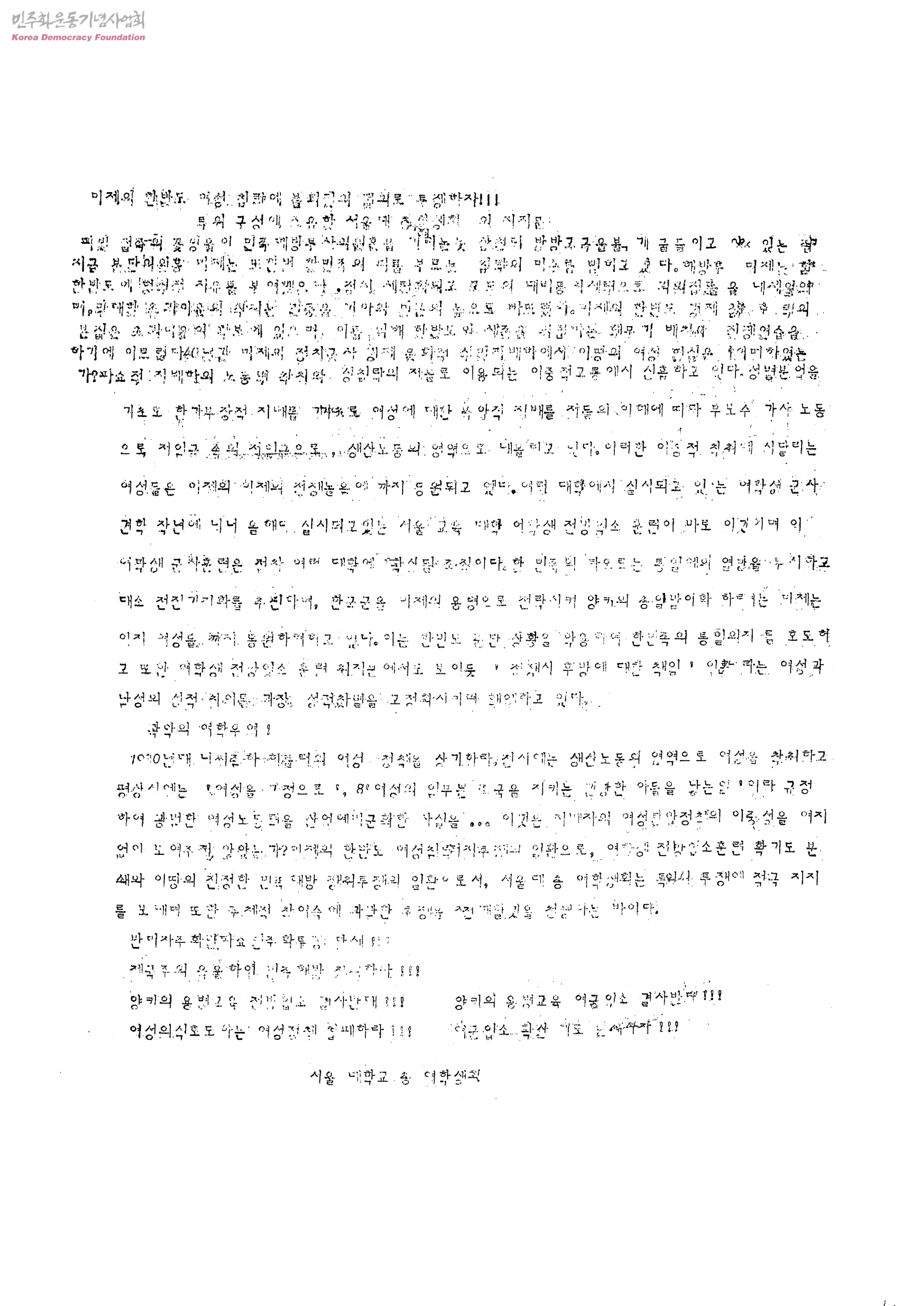 미제의 한번도 여성 침략에 불퇴진의 결의로 투쟁하자