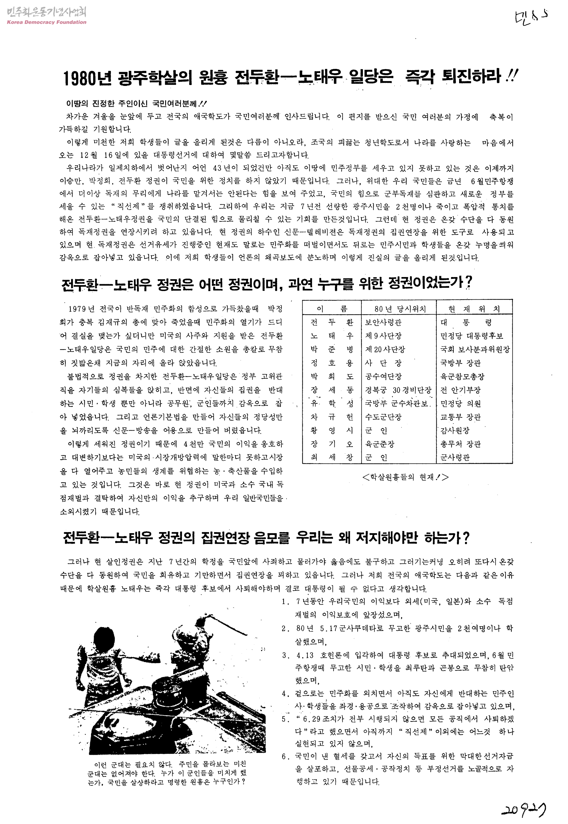 1980년 광주학살의 원흉 전두환-노태우 일당은 즉각 퇴진하라