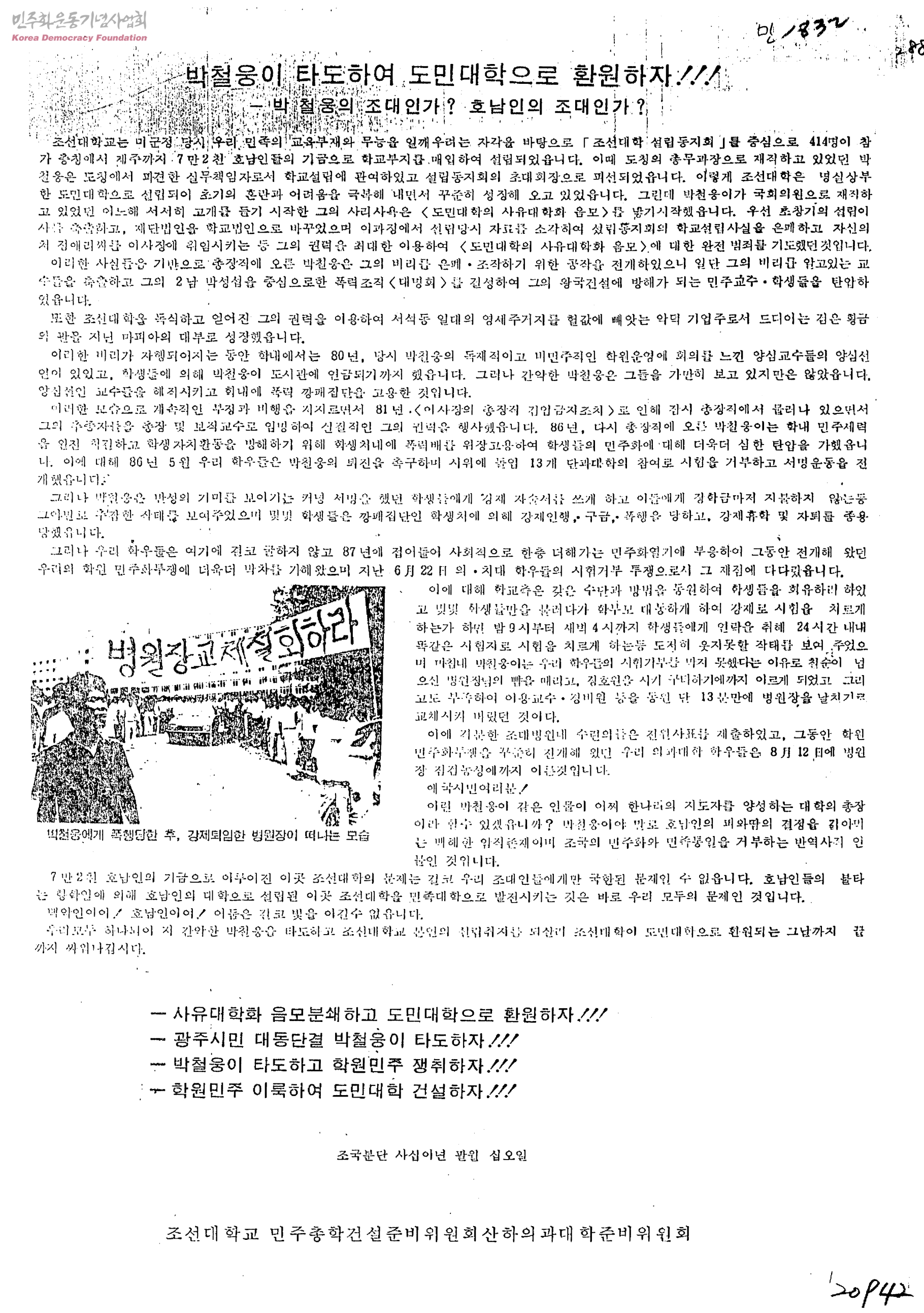 박철웅이 타도하여 도민대학으로 환원하자!!!-박철웅의 조대인가? 호남인의 조대인가?