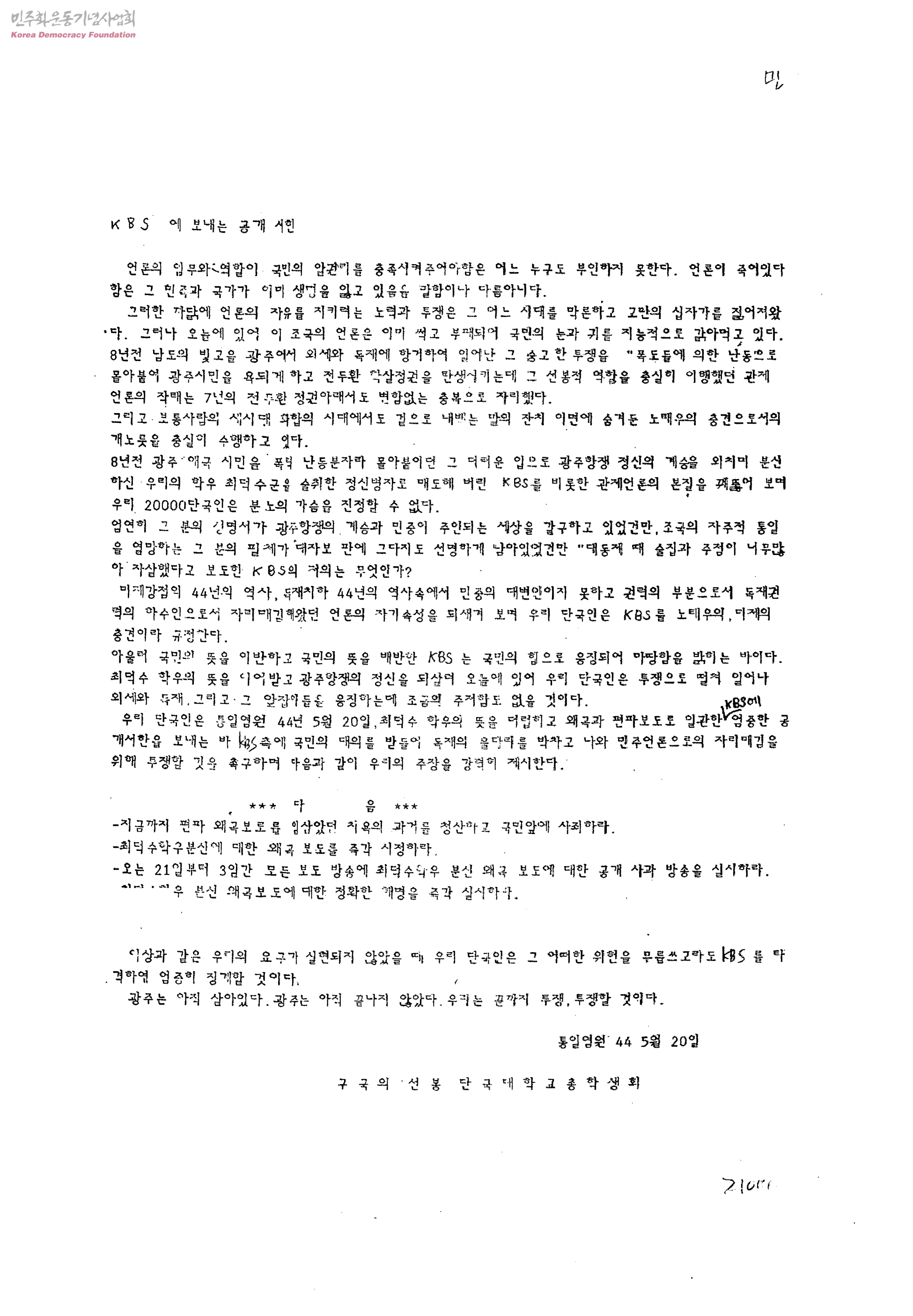 - 생산자 및 기증자가 ‘경향신문사’인 사진의 사용은 경향신문사 담당자(02-3701-1635)를 통해 구매하실 수 있습니다. 그 외의 생산자 및 기증자는 민주화운동기념사업회 사료관 담당자( hyunchaek@kdemo.or.kr / 02-6440-8961 )에게 문의바랍니다.