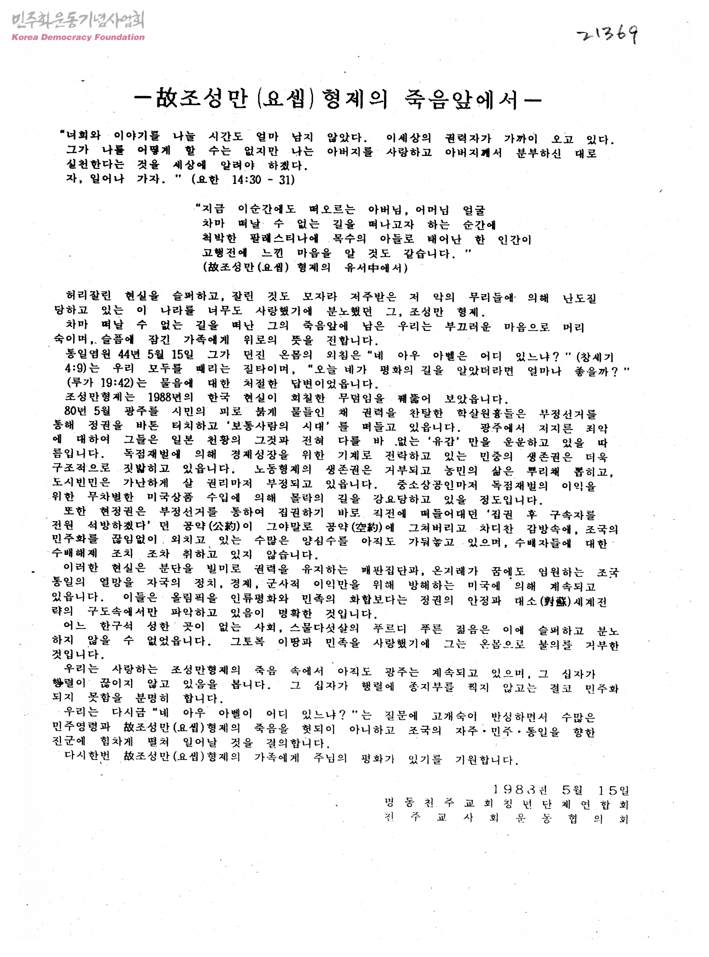 조성만 요셉 형제, 조국통일을 촉구하며 투신