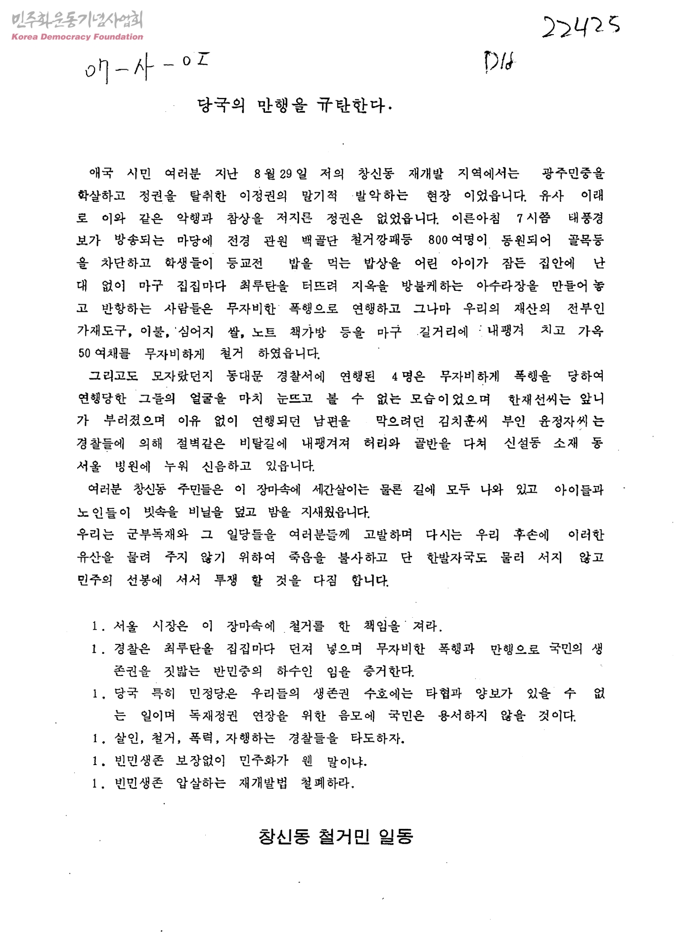 - 창신동철거민일동