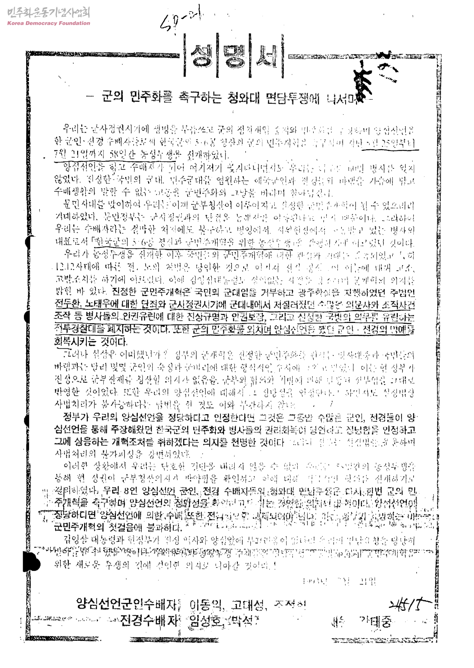 성명서-군의 민화를 촉구하는 청와대 면담투쟁에 나서며