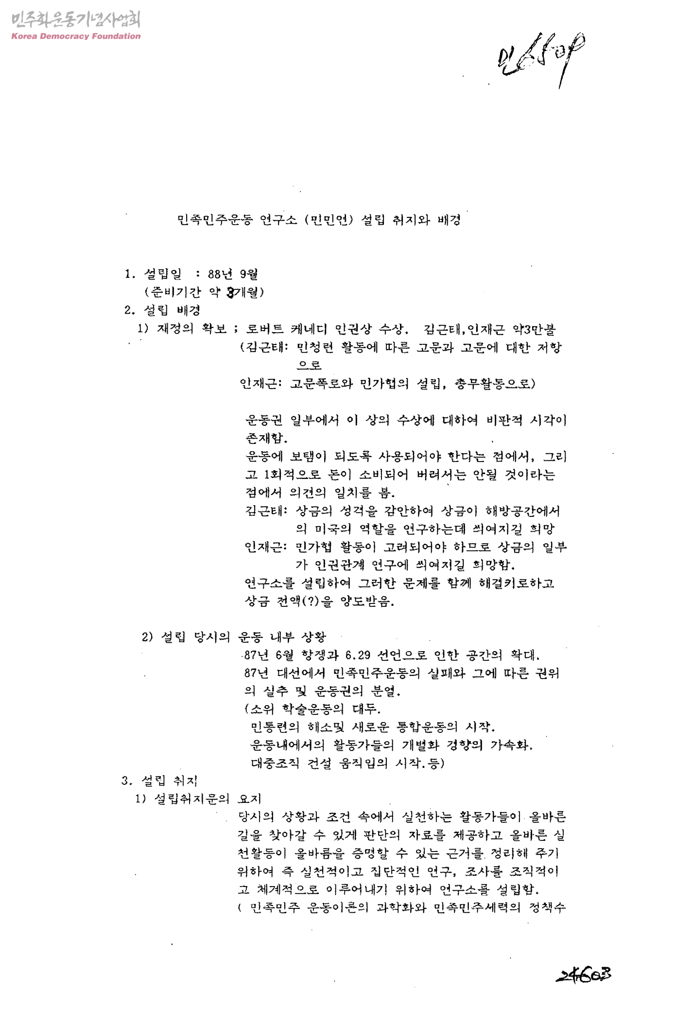 민족민주운동연구소 설립 취지와 배경