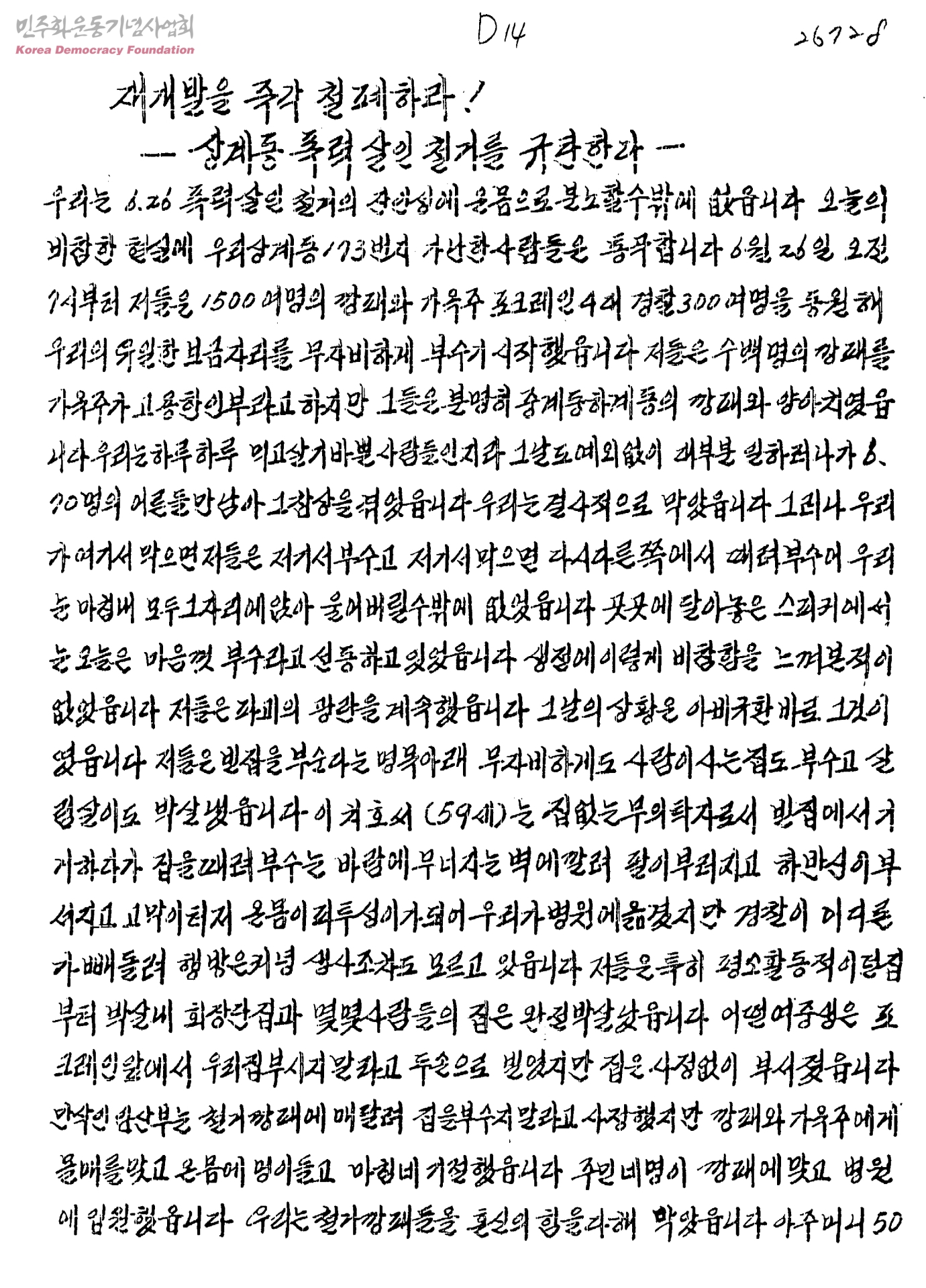 재개발을 즉각 철폐하라!-상계동 폭력 살인 철거를 규탄한다