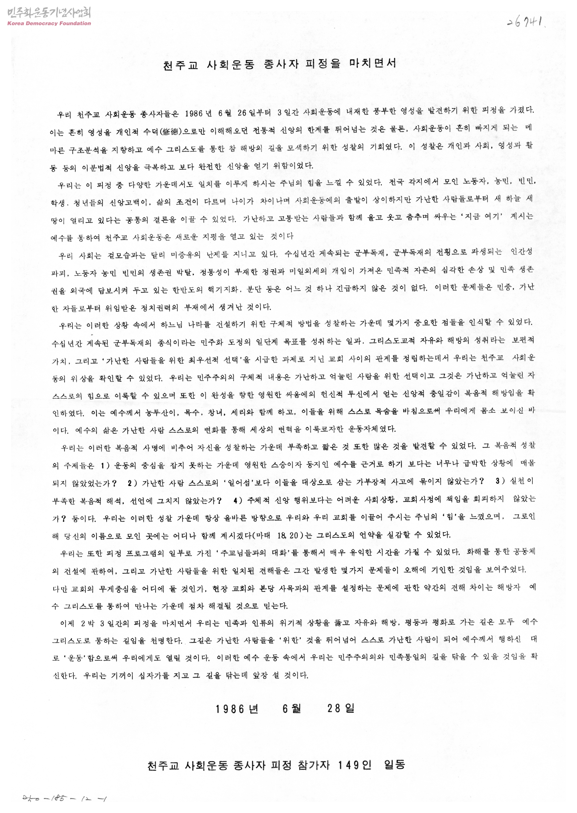 - 천주교 사회운동 종사자 피정 참가자 149인