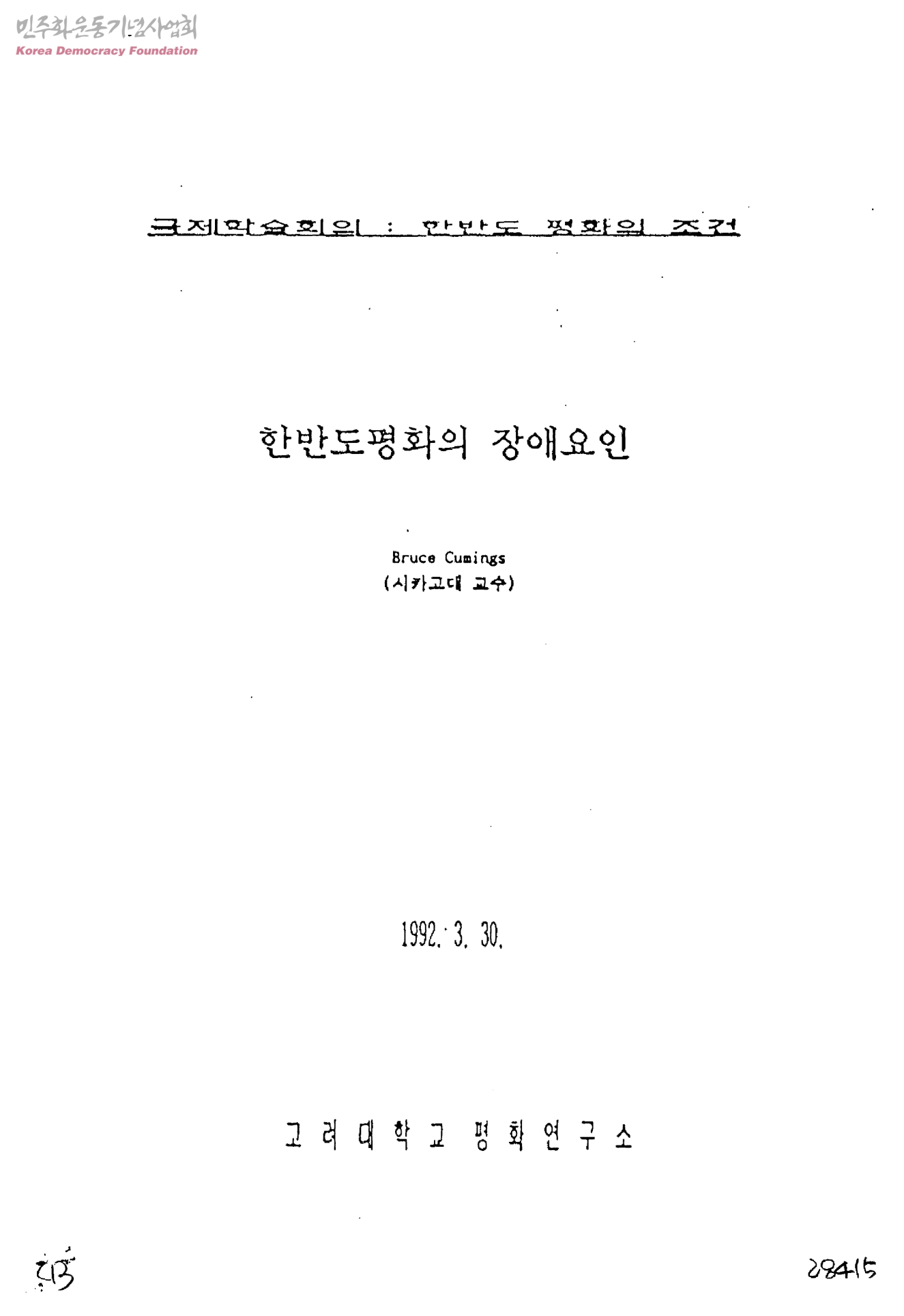국제학술회의:한반도 평화의 조건-한반도 평화의 장애요인