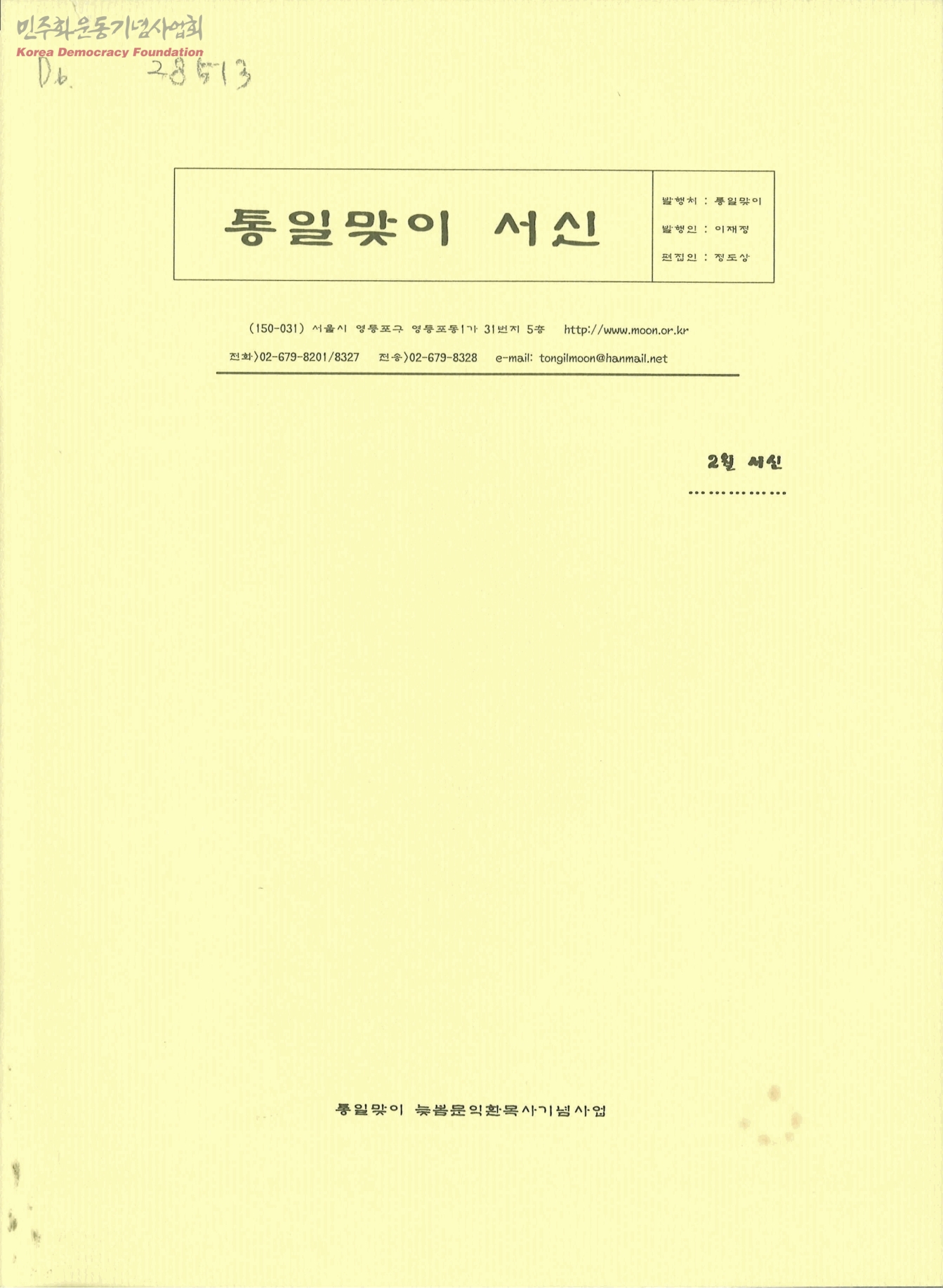 통일맞이 서신 2월 서신