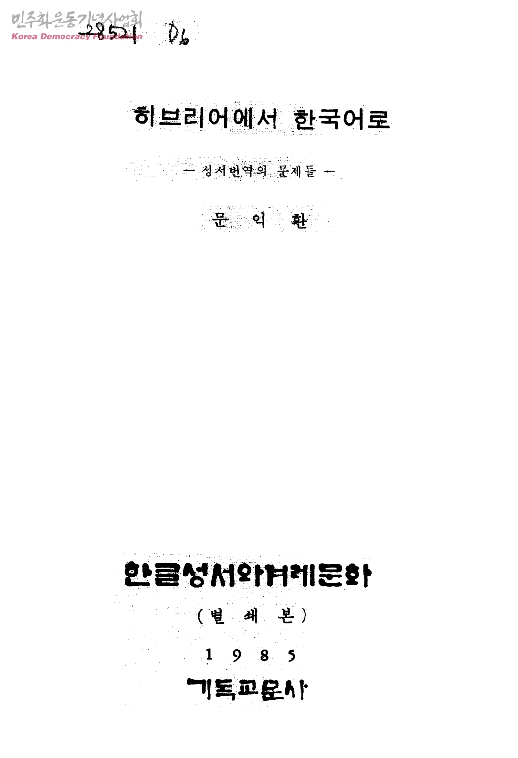 히브리어에서 한국어로-성서번역의 문제들