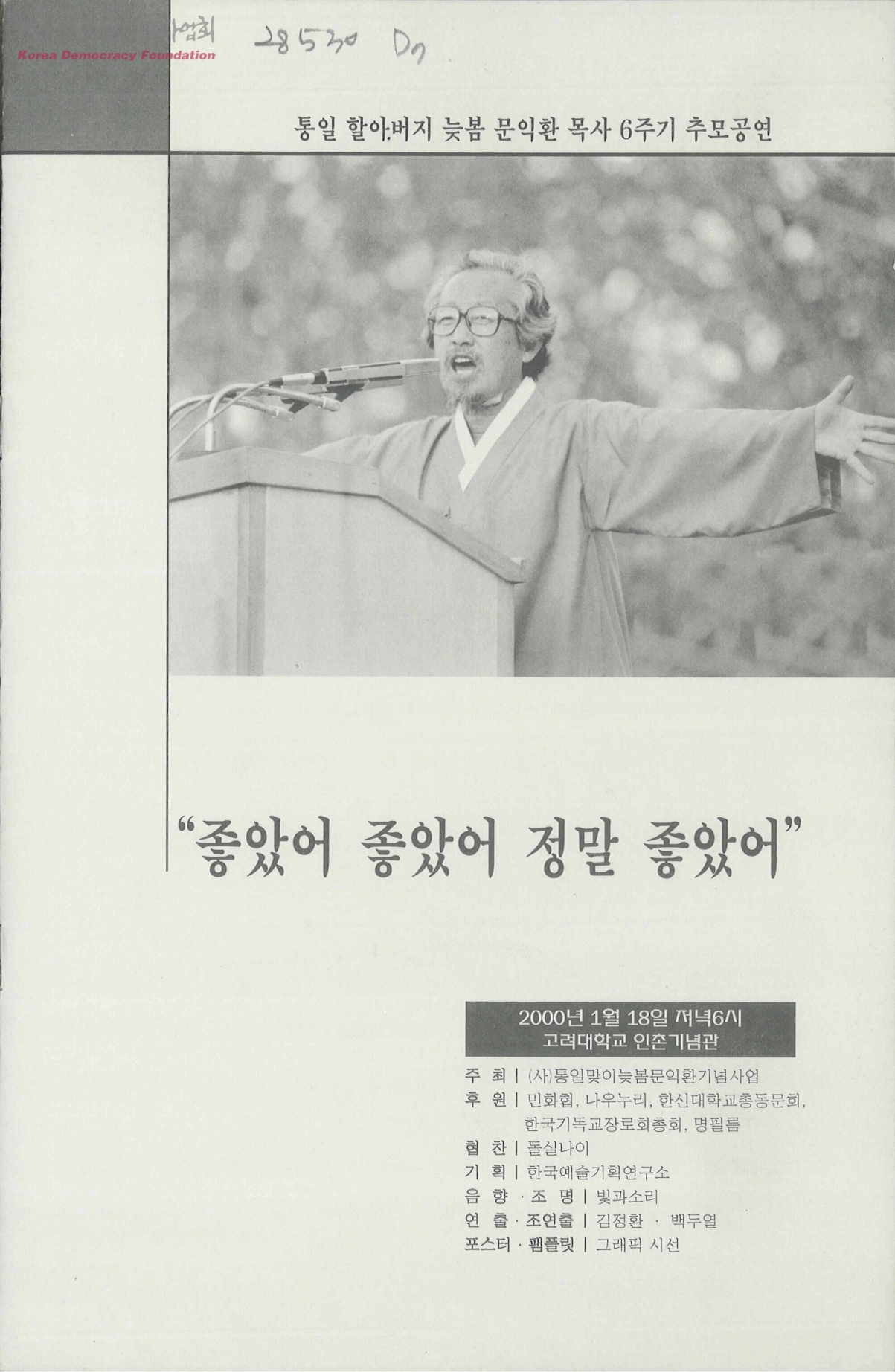 통일할아버지 늦봄 문익환 목사 6주기 추모공연-좋았어 좋았어 정말 좋았어