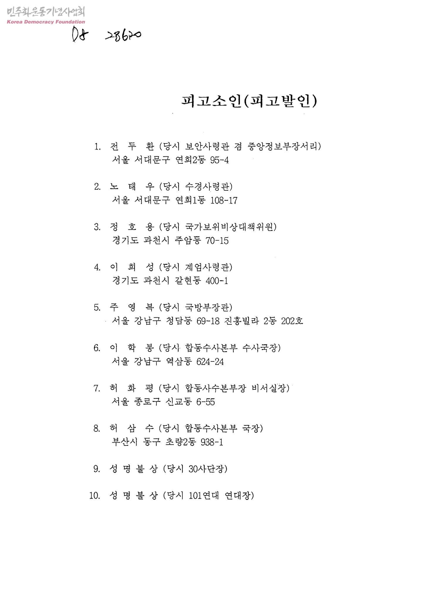 피고소인(피고발인)/서언[1980.5.17 군사쿠테타 관련]