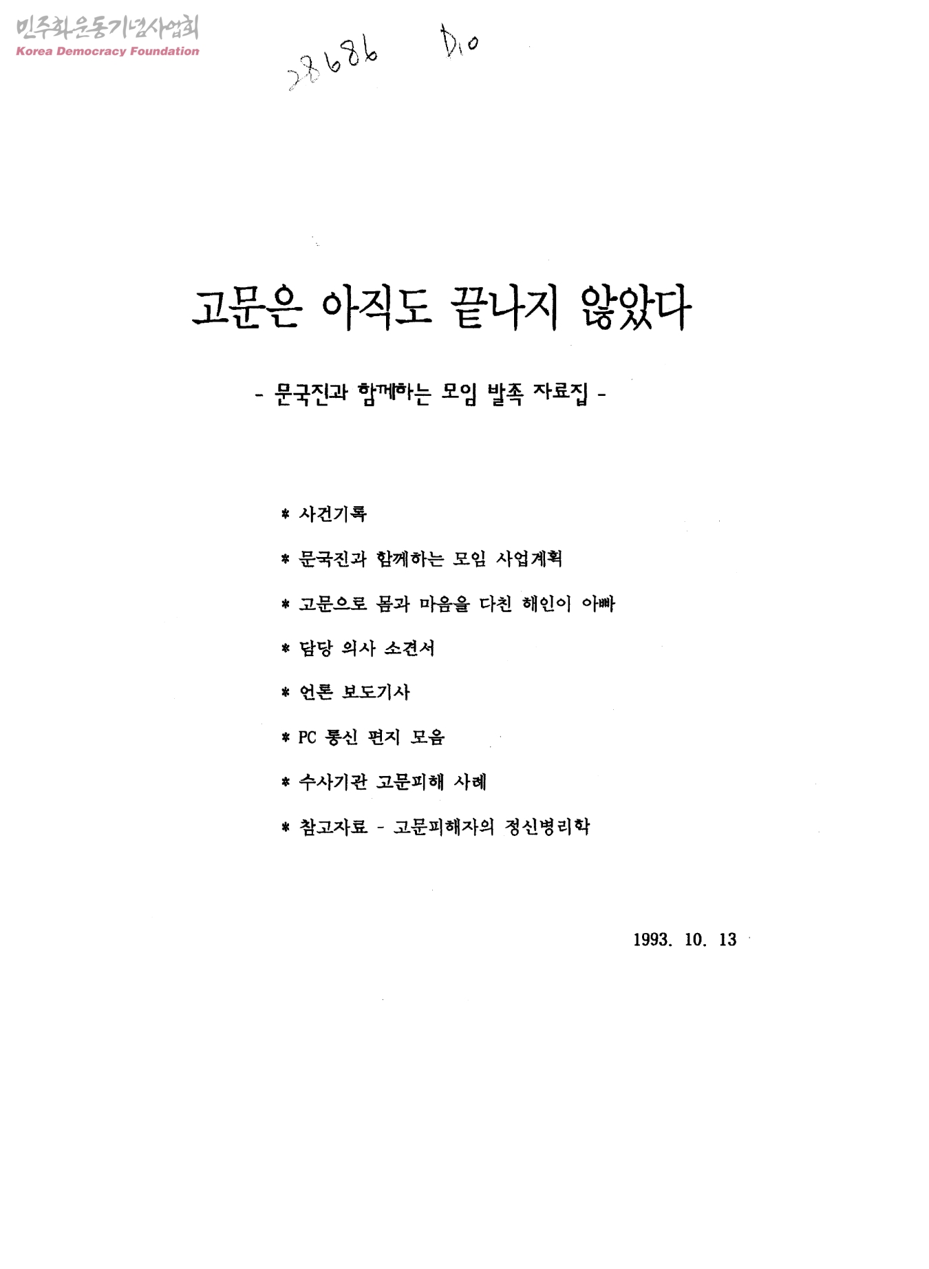 고문은 아직도 끝나지 않았다-문국진과 함께하는 모임 발족 자료집