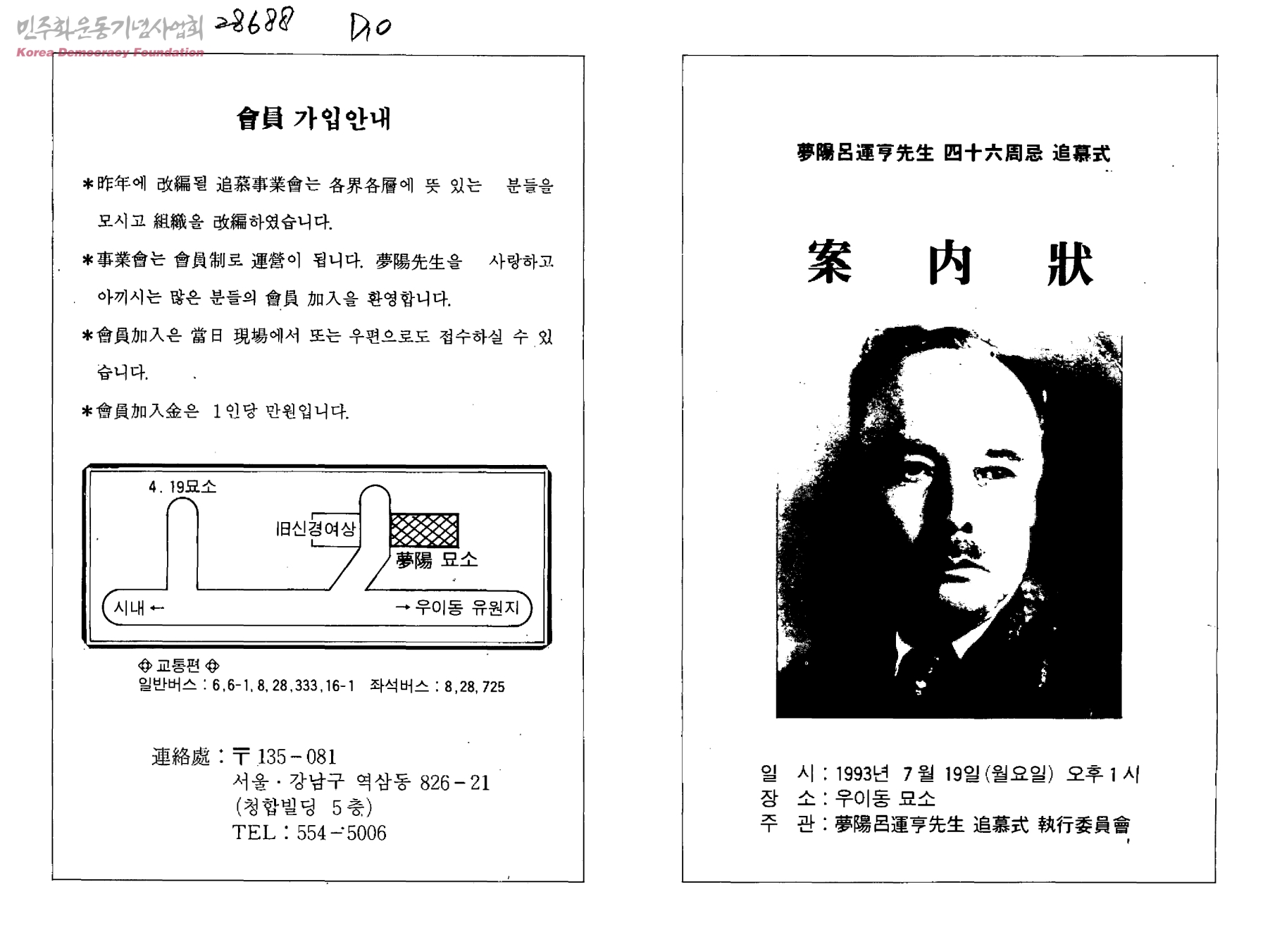 夢陽呂運亨先生 四十六周忌 追募式 案內將