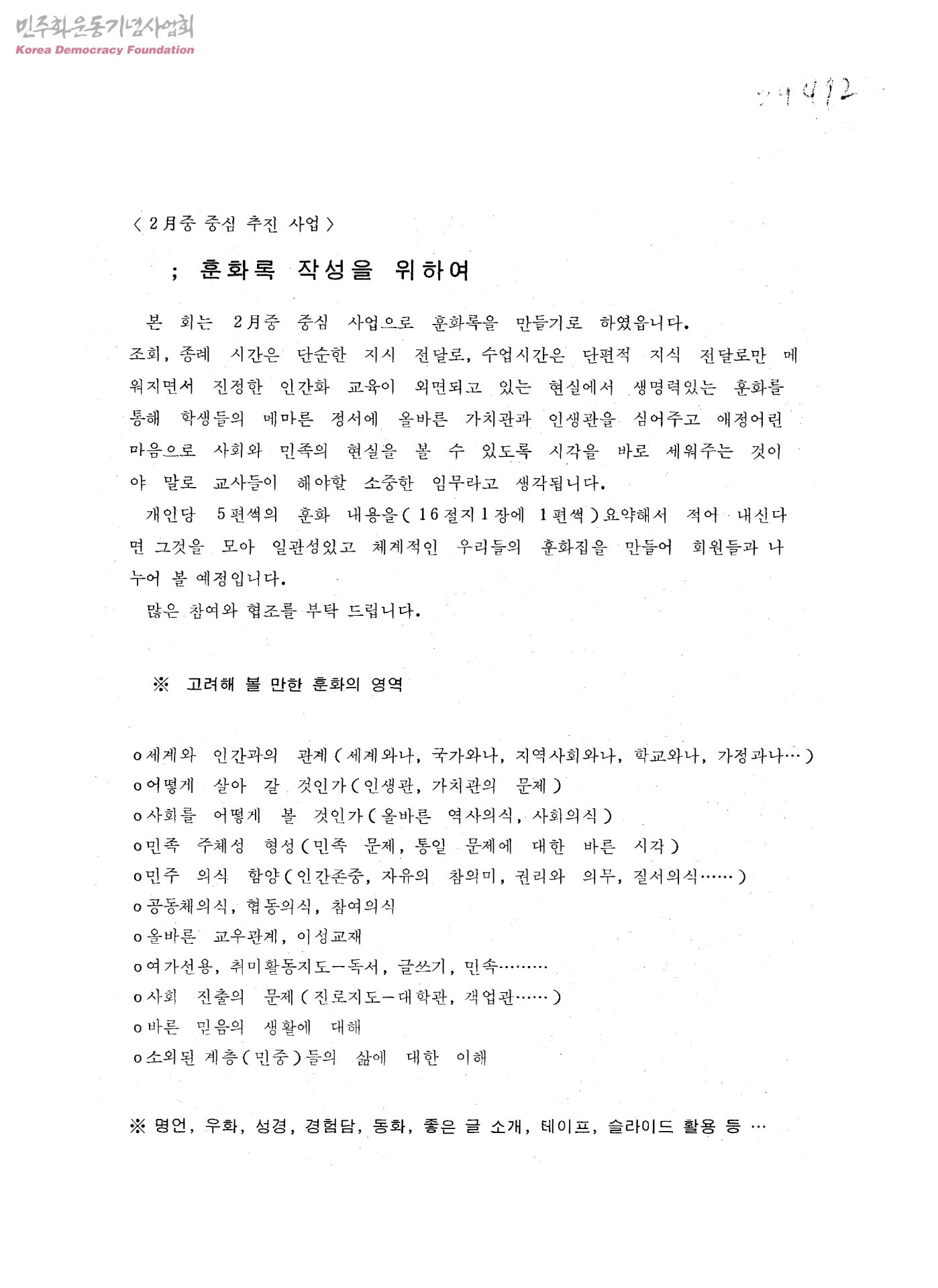 2月중 중심 추진 사업-훈화록 작성을 위하여