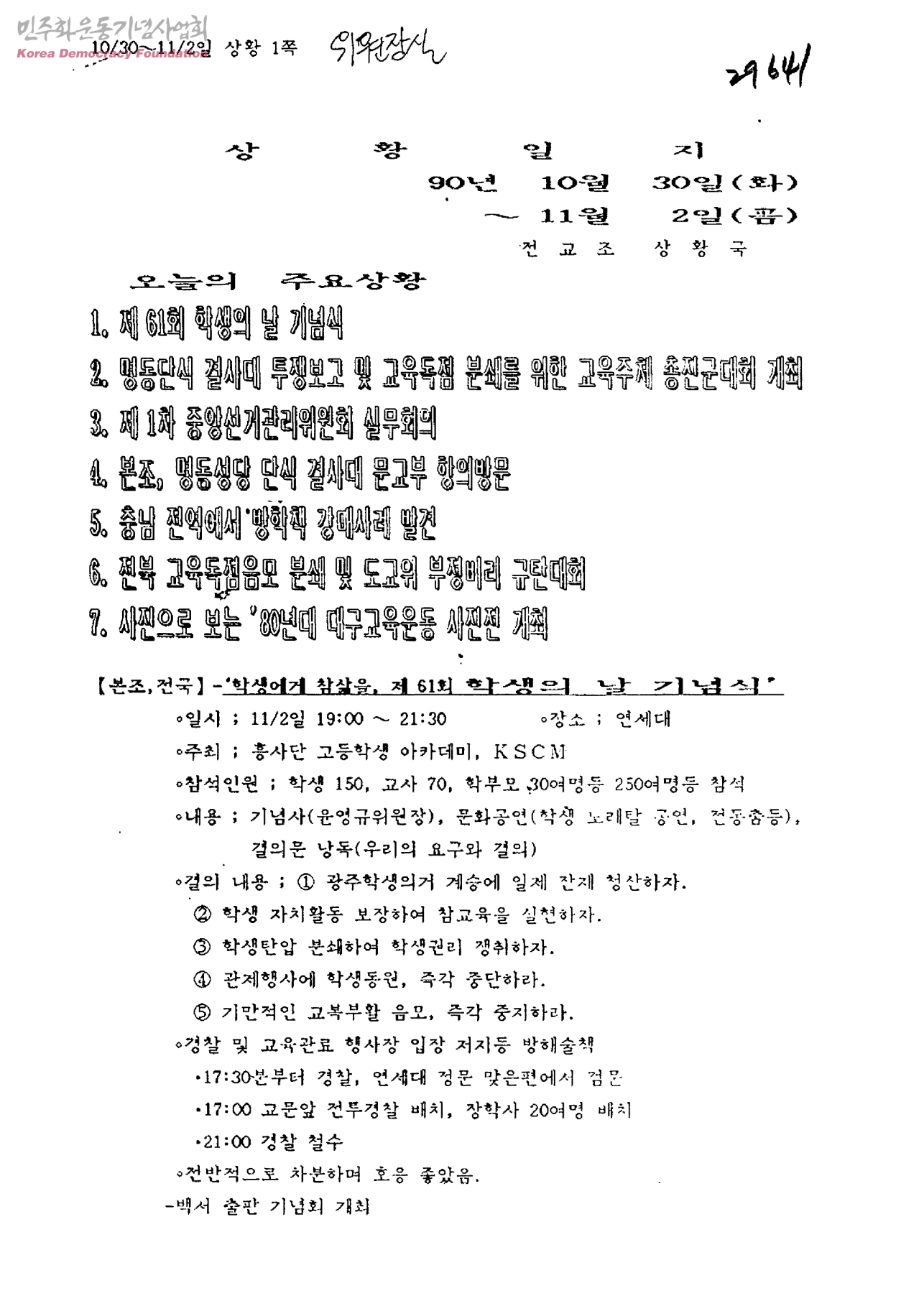 상황일지-90년 10월 30일(화)~11월 2일(금)