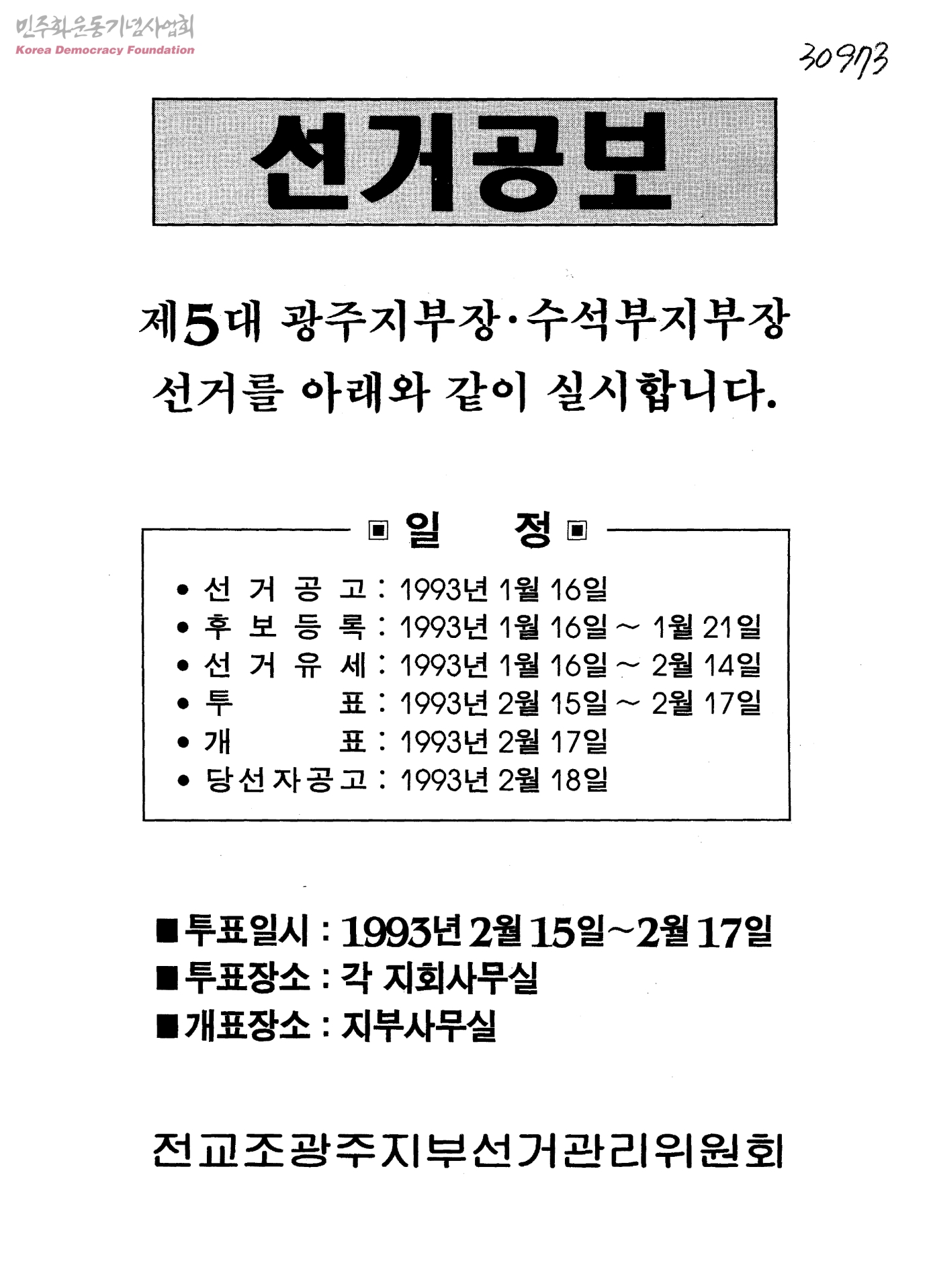 선거공보-제5대 광주지부장·수석부지부장 선거를 아래와 같이 실시합니다