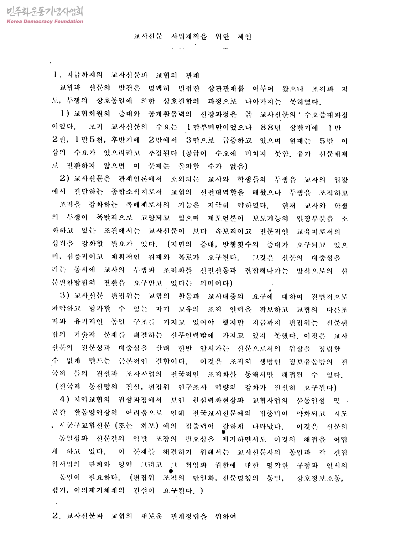 교사신문 사업계획을 위한 제언