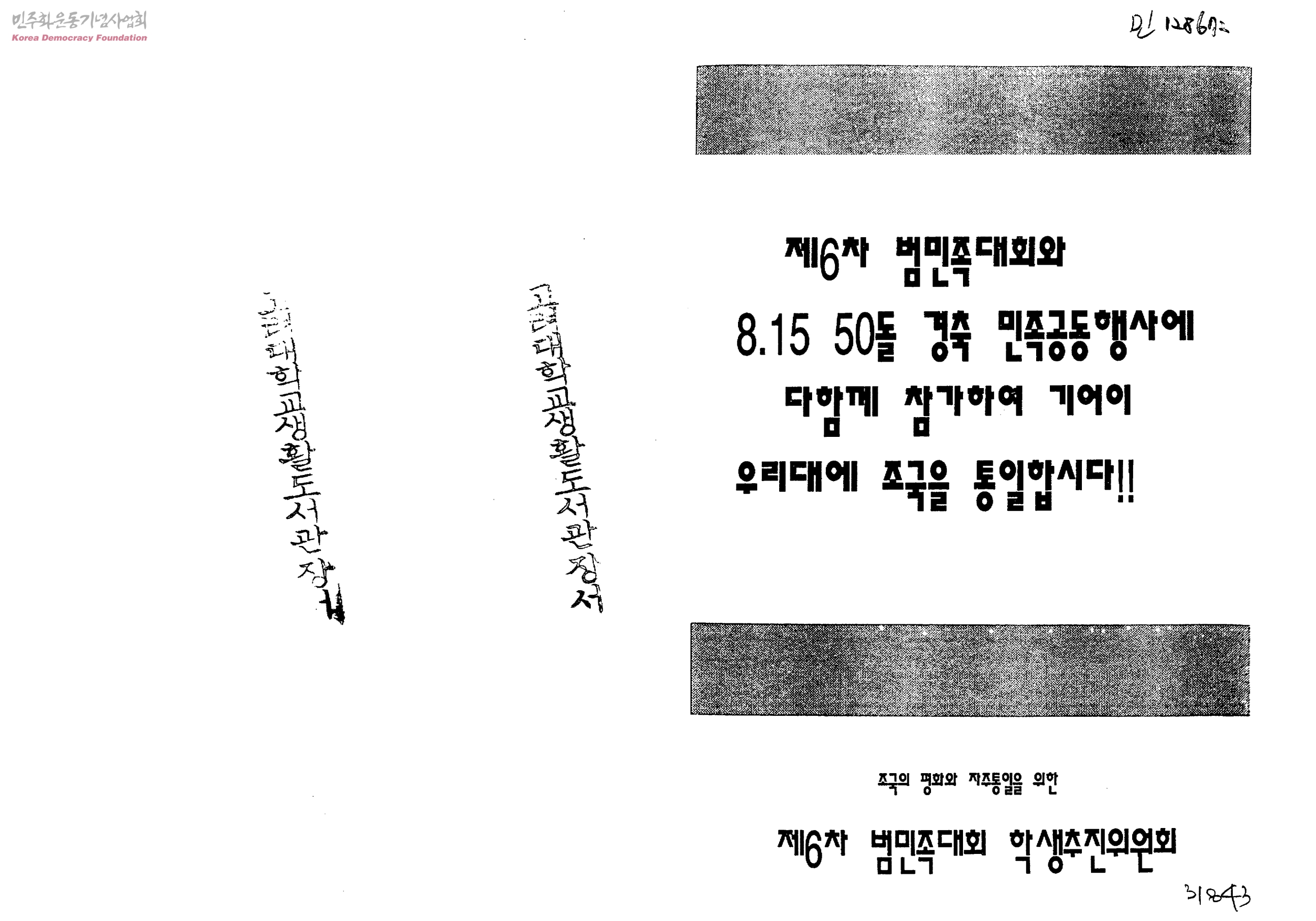 제6차 범민족대회와 8.15 50돌 경축 민족공동행사에 다함께 참가하여 기어이 우리대에 조국을 통일합시다!